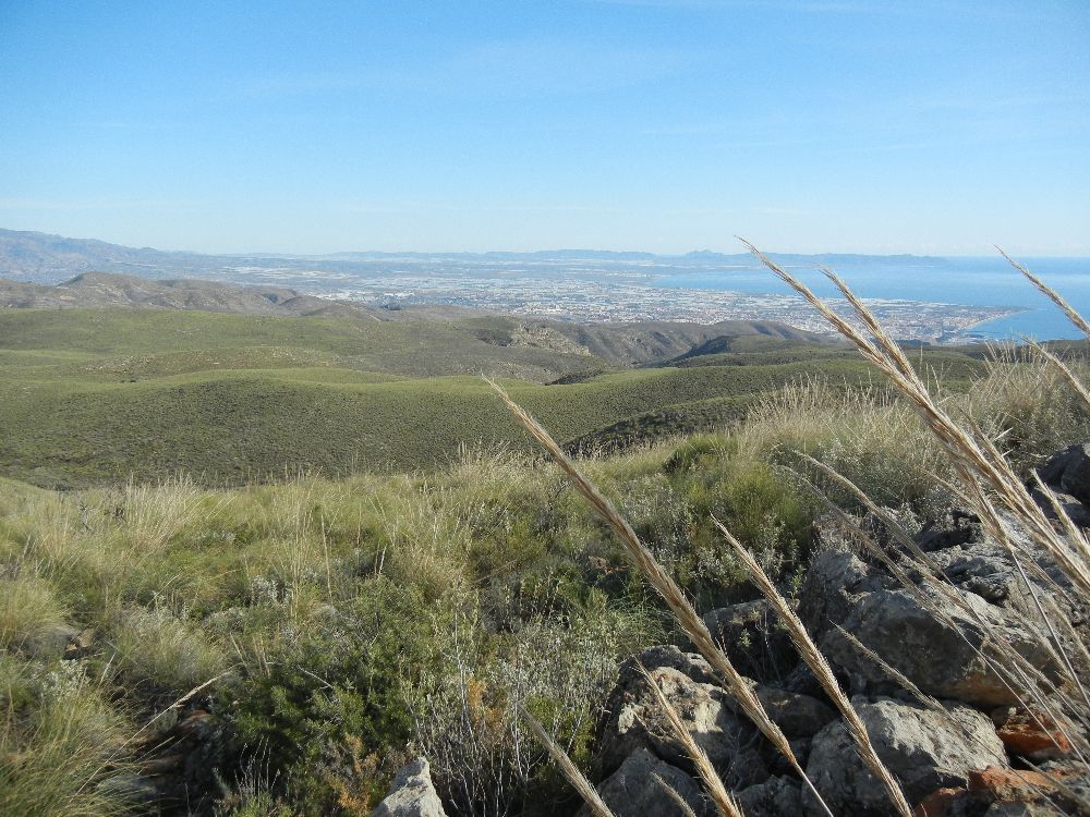 Der Desierto de Tabernas ist in der Tat die einige Wüste Europas. Im Moment relativ grün, die Gräser zeigen an, vor Kurzem muß es geregnet haben. Aus ungewohnter Sicht findet 123joe es trotzdem enorm kahl - und im Grunde hat er recht. Mir, der ich schon oft und lange hier war, fällt eher das ungewohnte Grün auf. Es ist eine Lehmwüste, mit Einsprengseln von vulkanischem, Kalk- und Sandstein, in den Ramblas zu grauen Kieseln zerrieben, deren Geologie ich nicht deuten kann.