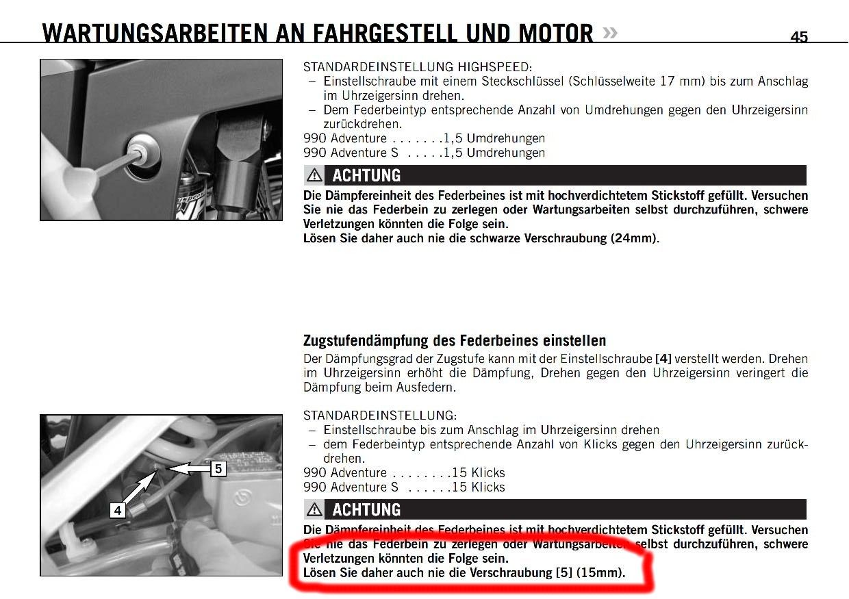 Wilkommen im Club! Meine Zugstufenverstgellung ist auch fest. Trotz Wartung des Federbeins bei ca. 30.000km. Hat schon mal jemand die Schraube wieder gängig bekommen? Z.B mit Kriechöl o.ä. Die Führungshülse geht ja wohl trotzdem noch raus, da die Schraube am Gewinde korrodiert, oder?