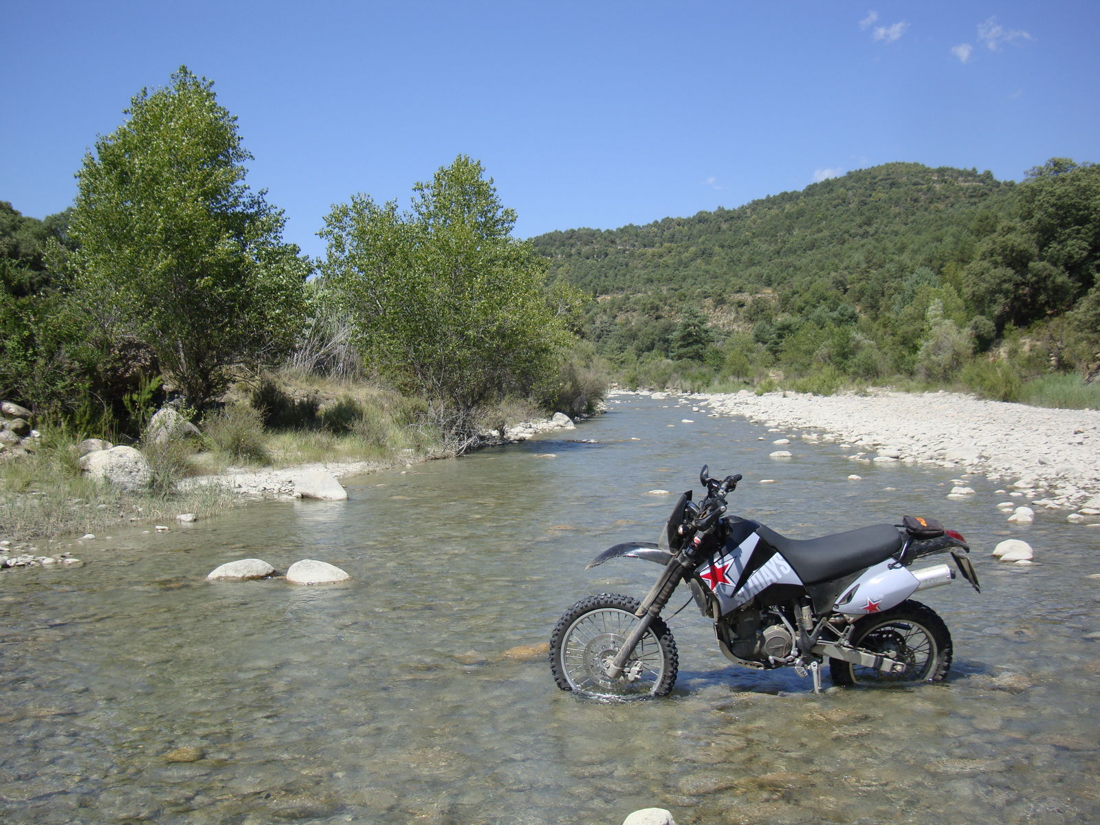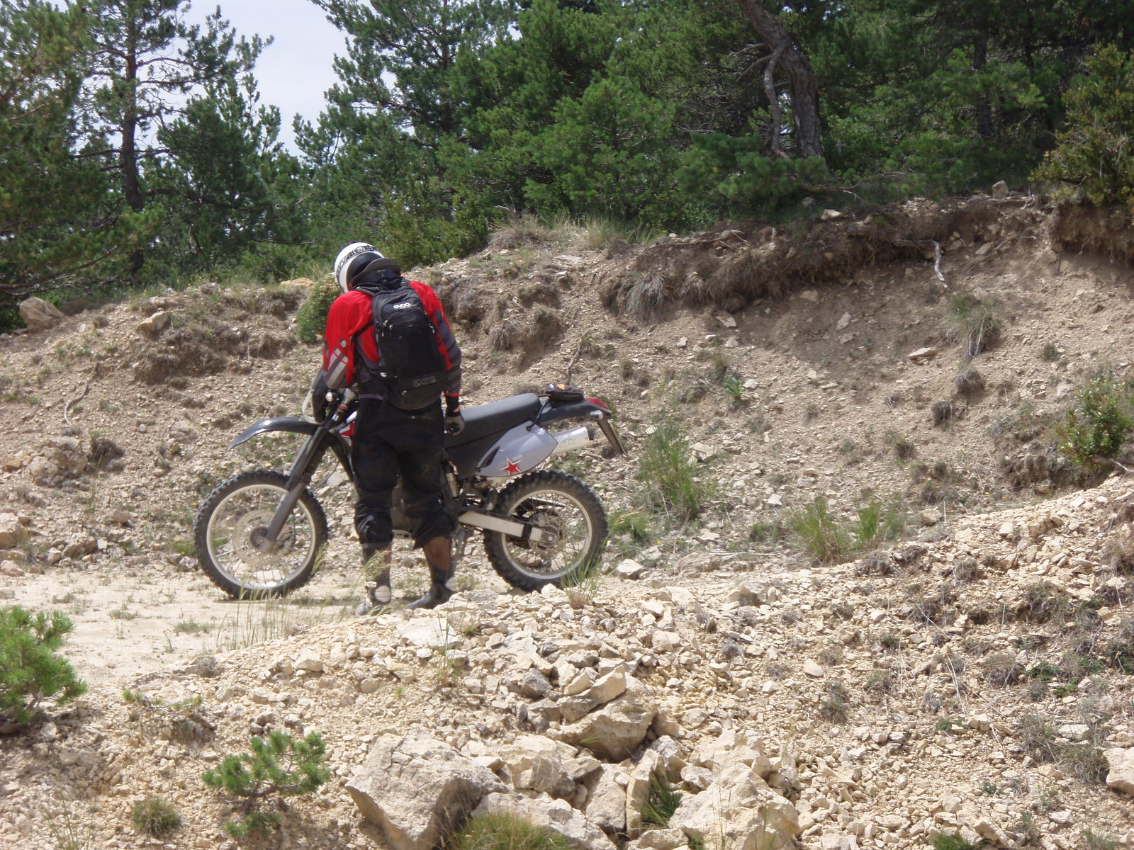 Begegnet sind wir offroad genau 5 mal irgendwelchen anderen Menschen. Einer HP2 aus FF/M und zwei @ aus Frankreich die eine Pyrenäenquerung gefahren sind. Der Rest waren Wanderer, nunja bei der Hitze.....