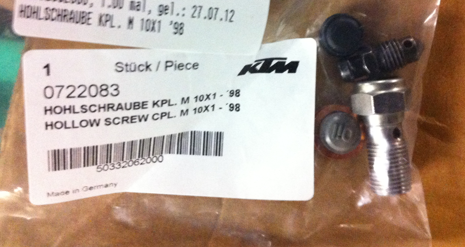 | Zitat: | 1x HOHLSCHRAUBE KPL. M 10X1