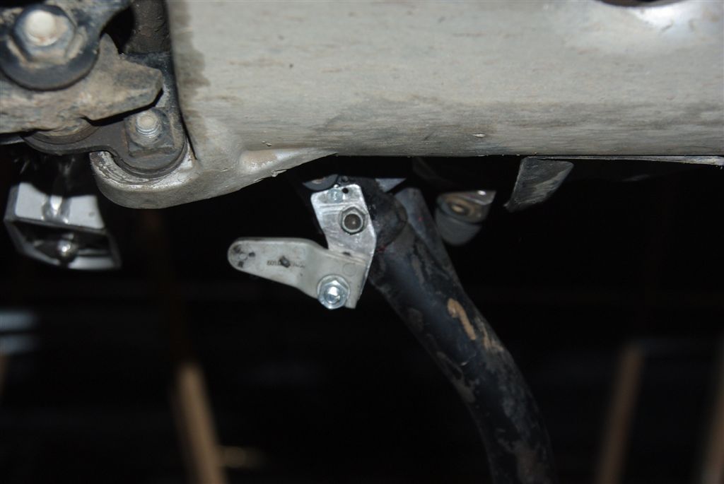 Hab nach der Montage der tiefen Rasten den Seitenständer an den Originalpunkten gelassen. Durch den Schweißpunkt am Anschlag liegt der Ständer auch so tief das der Killschalter ansprach.