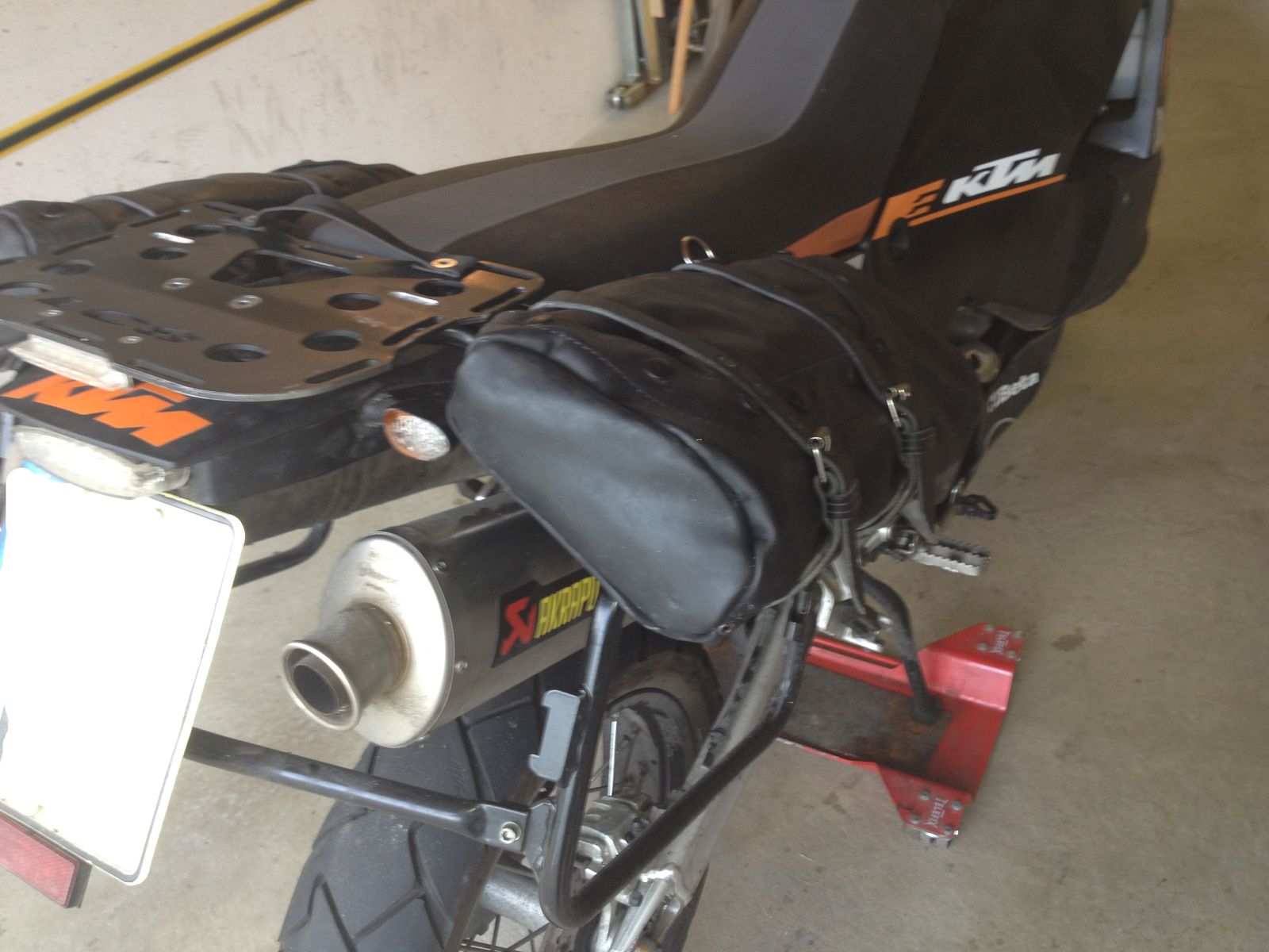 Aber durch die Taschen geht mein Konzept ( Als "TR-Hasser" hab ich nur ne´ kleine Tanktasche für die persönliche Ausstattung wie Geldbeutel, Handy, Zigis etc. ) für leichtes Gepäck nun perfekt auf Very Happy Durch diese Zusatztaschen bringe ich jetzt, zusammen mit einer kleinen Hecktasche, alles für eine Tour unter, egal ob 1 oder 2 Wochen, was in einer Gepäckrolle m.E. nichts zu suchen hat ( Regenklamotten, zusätzliches Werkzeug, div. Ersatzteile wie Benzinpumpe-KNZ-Schalt-und Bremshebel..., Reserveschläuche, Öl, Kettenspray, Kaltmetall und Kleber, 12 m Bergeseil, Verbandspackerl, Warnweste, etc. etc. ) rein. Es passt sogar der 2 Literkanister von TT rein.
