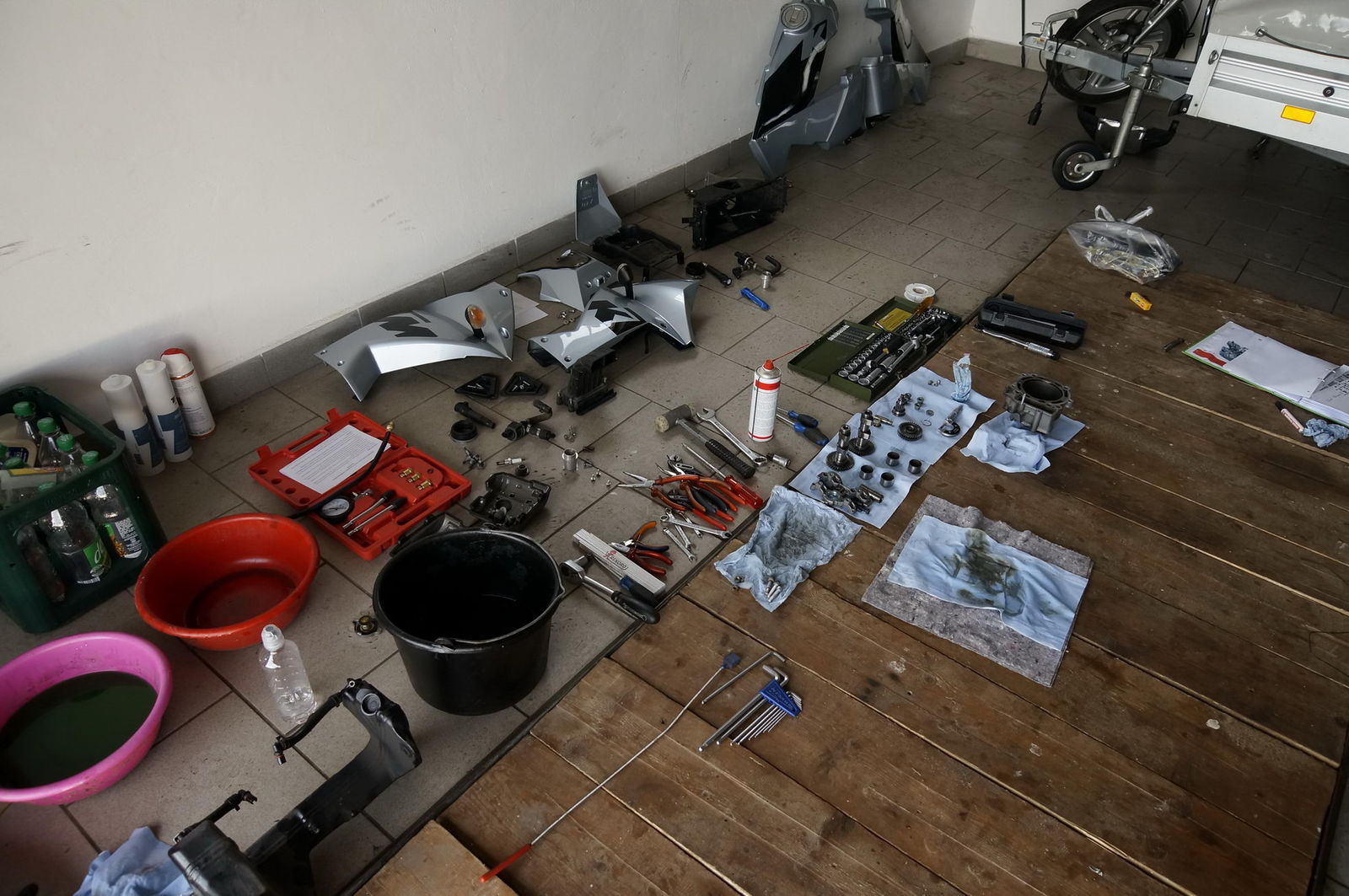 Morgen wird jedenfalls mal der Kopf, Zylinder und Kolben abgenommen um zu sehen was alles defekt ist.