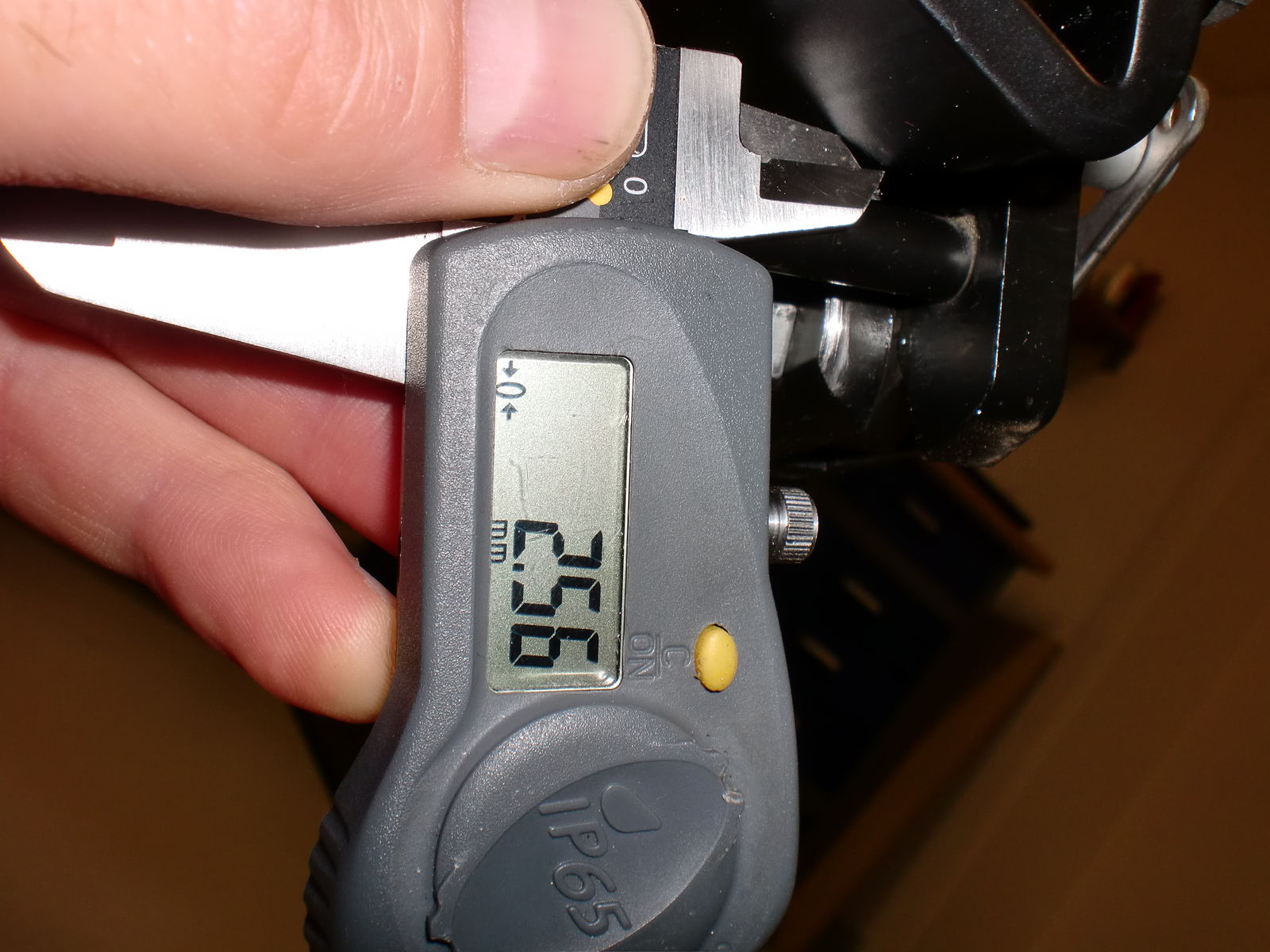 Bekomme den Schalter nicht an die gewünschte Position, d.h. der schmalere Teil des Schalters ist breiter, als der Spalt zwischen Bolzen und Blechbügel. Bin grad nicht vor Ort, aber der Spalt ist ca. 4mm und die schmalere Seite des Schalters ist ca. 7mm. Leider sind alle Bohrungen und Gewinde vorgegeben, sodass ich eigentlich auch nichts korrigieren kann...
