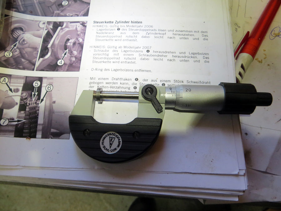 x Ventilspiel kontrolliert (bei den beiden Auslassventilen am hinteren Zylinder war zu wenig Spiel, sonst alles gut) habe Shims mit Durchmesser 9,48mm angesetzt weil verfügbar