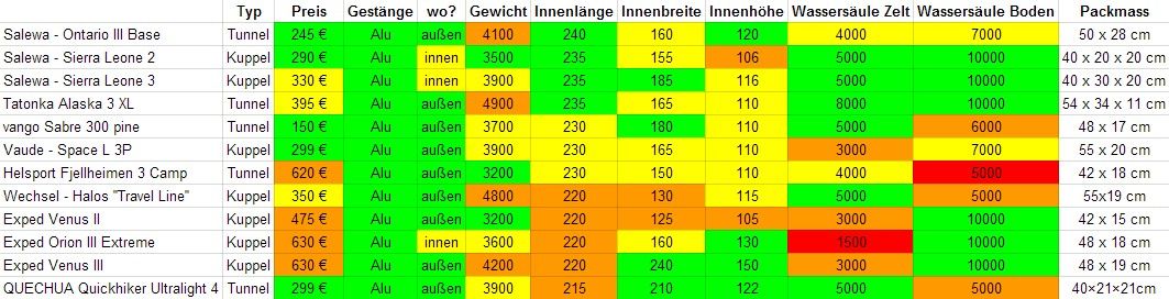Da ich fast 2m bin, fallen bei mir die Zelte mit 2,20m Liegelänge fast schon aus dem Rennen.