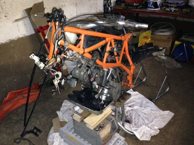 Das ist der bisherige Stand. Heckrahmen, Schwinge und Federbein sind wieder drin. Morgen bekomme ich noch Teile aus dem hohen Norden und dann gehts weiter.....
