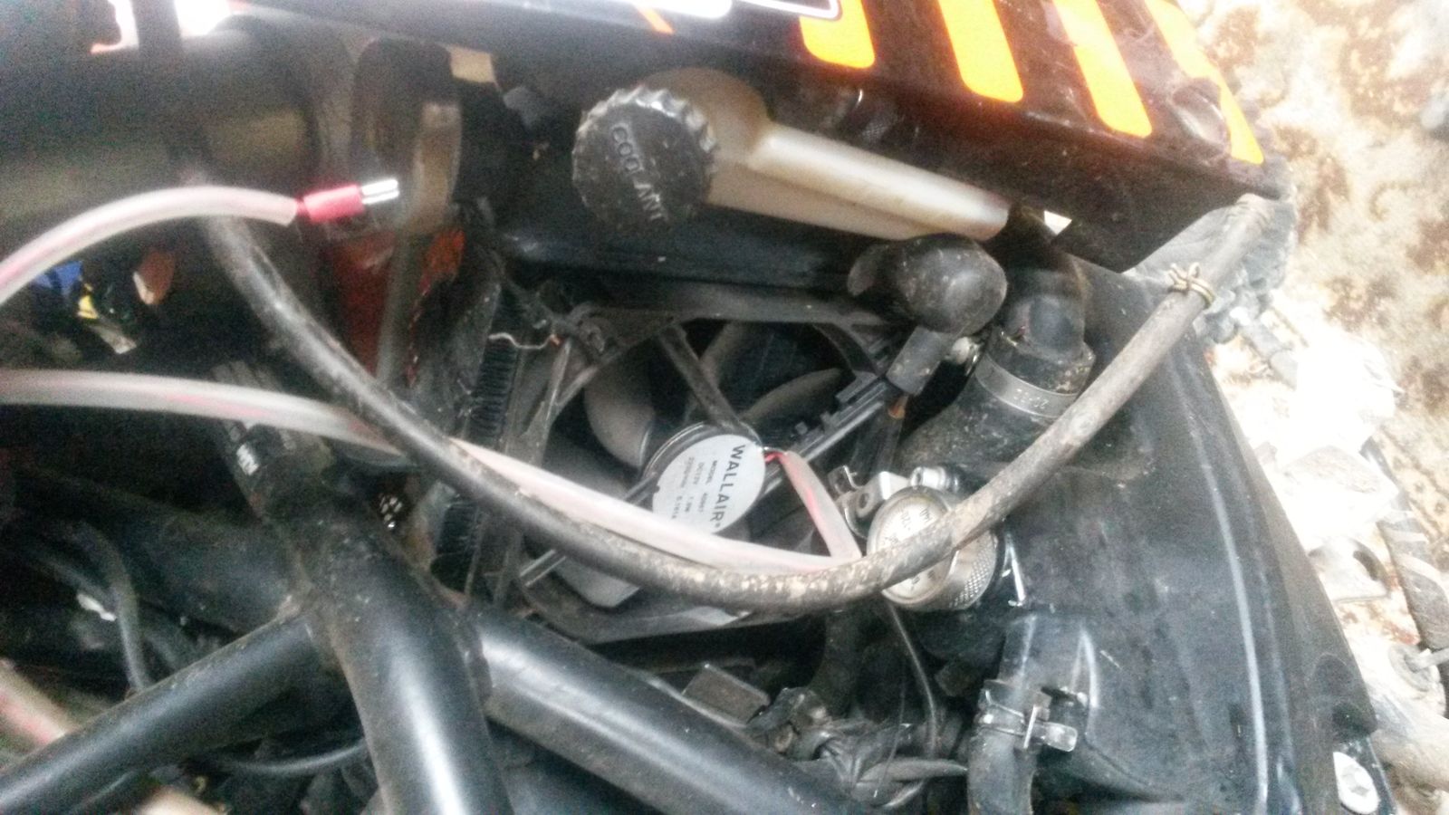 Ich habe einen relativ neuen LC4 Lüfter rechts eingebaut, etwas kleiner und auch nur manuell zuschaltbar. Als Schalter habe ich einen robusten Motorradschalter (polo-motorrad.de/de/an-aus-schalter-fur-lenker-mit-schelle-typ-schliesser.html) .