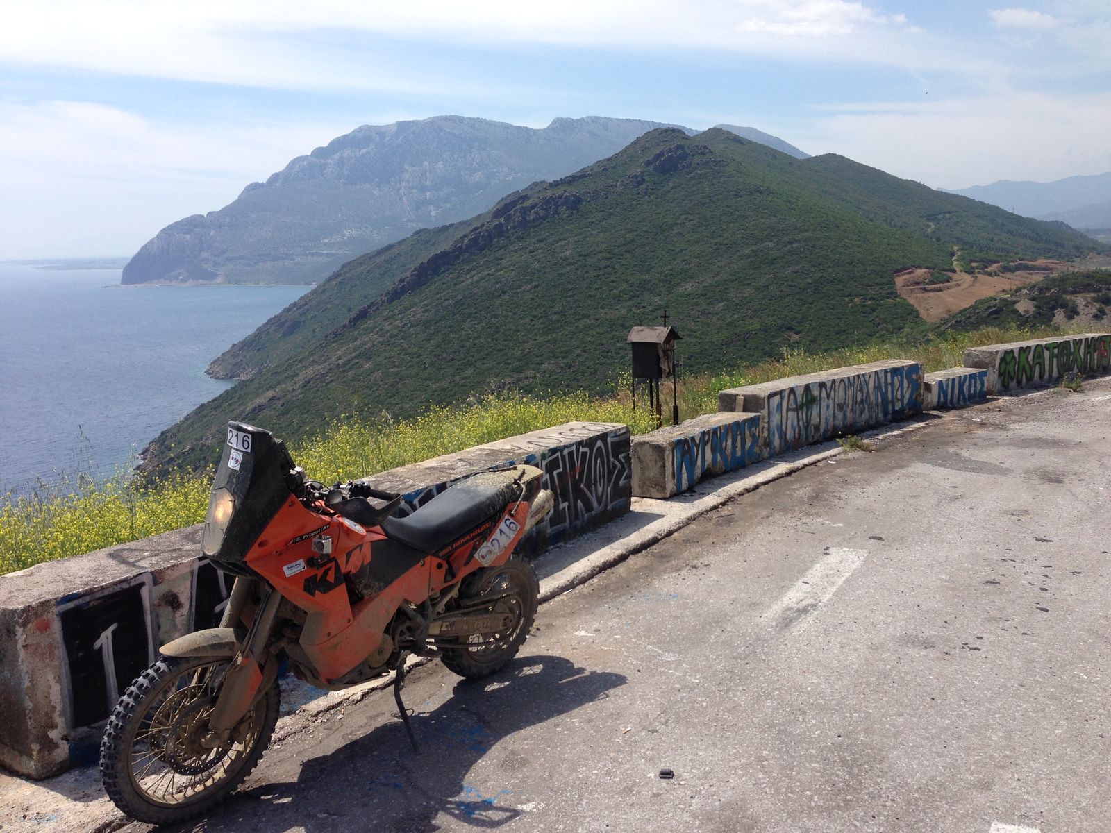 die griechen sind fuer ihre vorliebe zum enduro bekannt, darum kann es schonmal etwas "knackiger" werden, laesst sich aber alles bewaeltigen mit der dicken, selbst im serienmaessigen zustand.