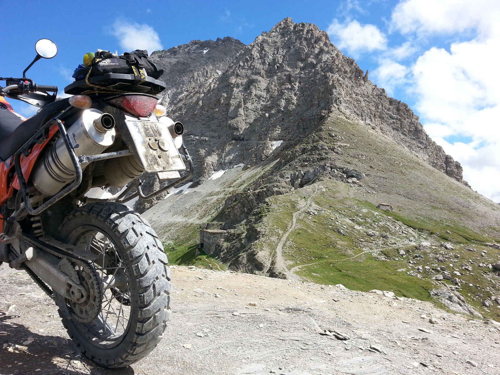 So rollten wir nach Bardonecchia, und der Heidenau machte auch das noch locker mit. An der Tanke ging es dann nur 10 Minuten, und der neue Schlauch war montiert. Der K60 Scout hält mir sicherlich noch 5000km, dann hat er 15000 .