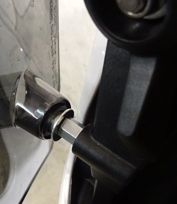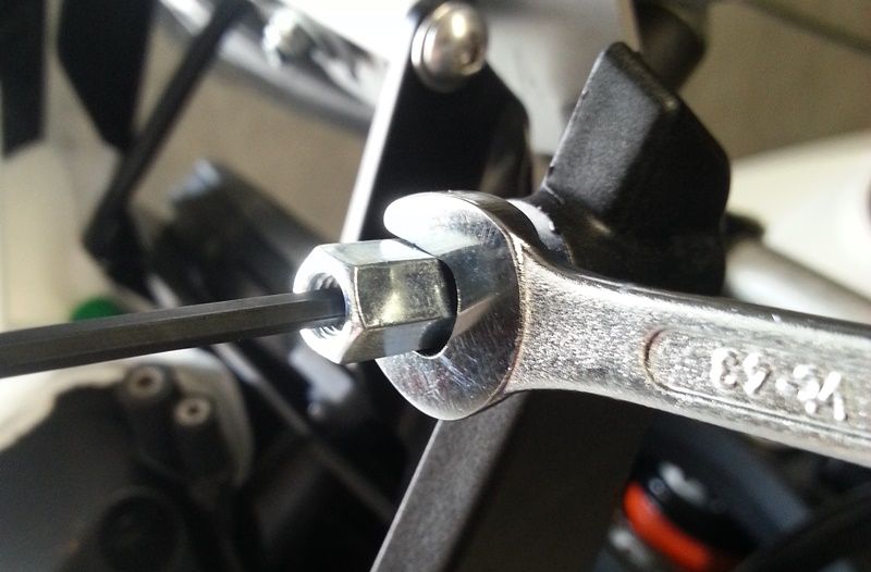Ich habe die gleiche Methode unten mit einer halbierten Verlängerungsmutter versucht. Leider ist die Standardschraube (Teilenummer: 69008021160, SONDERSCHRAUBE M5X12) dazu etwas zu lang und ich wollte sie vorerst nicht kürzen. Ich werde mir noch zwei solche Schrauben vom Händler besorgen und die dann kürzen.