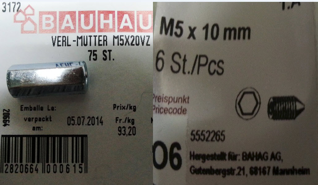 - Dann eine Verlängerungsmutter M5x20 aufgesetzt