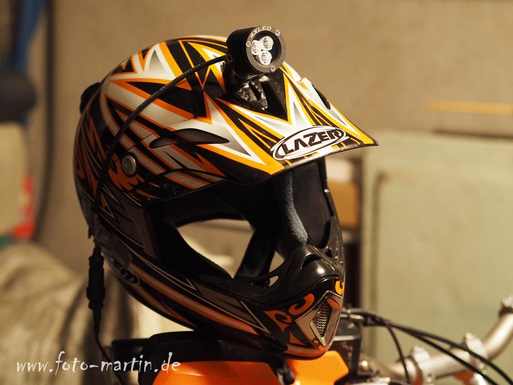 Die Helmlampe kann man auf kaum belebter Straße schon mal anmachen, der Kopf ist schnell etwas seitlich oder nach unten weggedreht