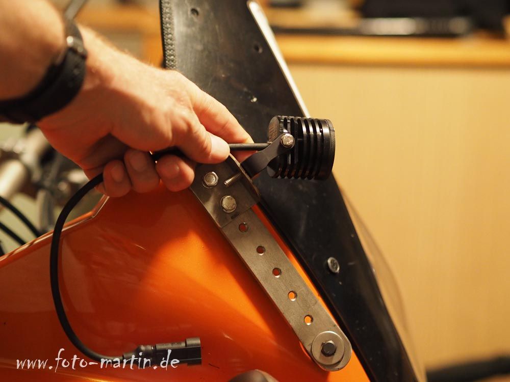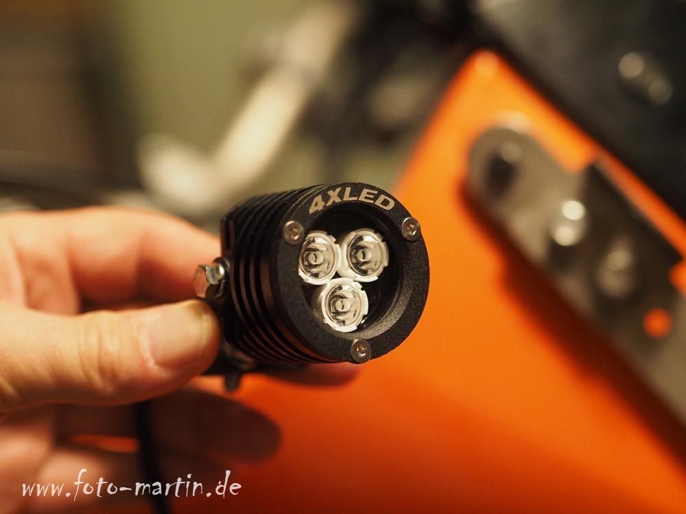 Deshalb habe ich meine stark nach unten justiert. Sie leuchten nun den Bereich unmittelbar vor dem Bike aus. Eigentlich habe ich die Leuchtkörper hauptsächlich montiert, um besser durch den Gegenverkehr wahrgenommen zu werden.......das paßt 100%ig Mr. Green Wink !