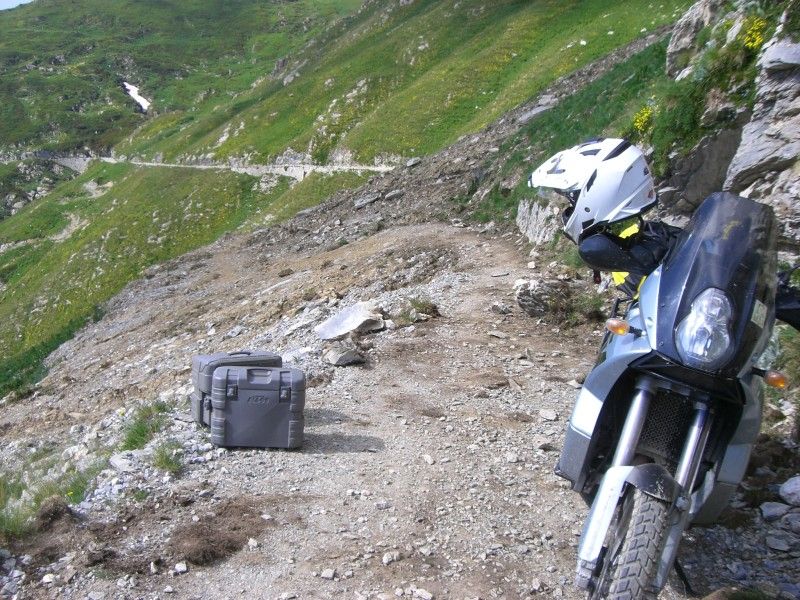 Wie man auf den Bildern im Vergleich mit dem Pirelli MT90 sehen kann ist der GT201 etwas schmaler, viel runder und auch höher gebaut (im direkten Vergleich beim montieren). Das Motorrad kippt schnell und leicht in Kurven rein. Allerdings fällt auf dass beim weiteren reinlegen der Vorderreifen mehr Nachdruck richtung Kurve verlangt und einen festeren Griff am Lenker (wegen Zuladung). Reifendruck war auf Teer 2,4/2,8 bar, später im Gelände 2,0/2,0 bar. Damit hatte ich einen sehr guten Griff und Eigendämpfung. Weniger war nicht sinnvoll wegen der sehr steinigen Piste. Am Hinterreifen ist nach 2000 Km gewisser Abrieb merkbar. Neu war hinten knapp 10 mm, jetzt nach 2000 Km ca. 7-8 mm. Der vordere Reifen ist lauter als der MT90 auf Teer. Ich bin auf Landstrassen ca. 90-100 Km/h und Autostrada 110-120 Km/h gefahren.