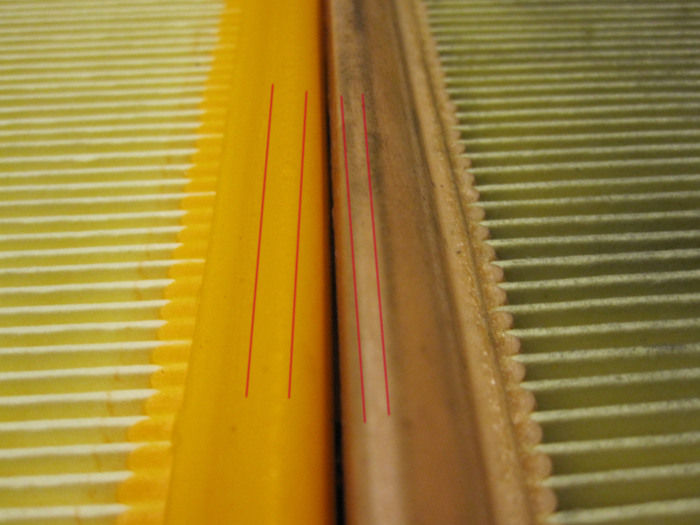 M. E. wäre die bessere Lösung insgesamt gewesen, den vorderen Teil komplett zu verschließen, da dies ja nur eine Fehlerquelle mehr ist, wo ungefilterte Luft von oben mit durch kommen kann. Noch dazu bei dem sehr dünnen Steg. Ein Fettauftrag auf der Deckeldichtung macht es sichtbar. Probiert es doch selber mal aus.