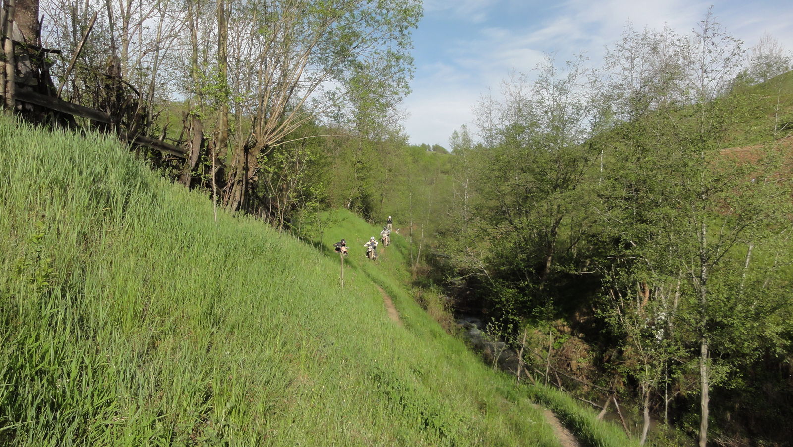 | letzte Herausforderung: durch den Hinterhof auf einem Trampelpfad steil überm Bach |