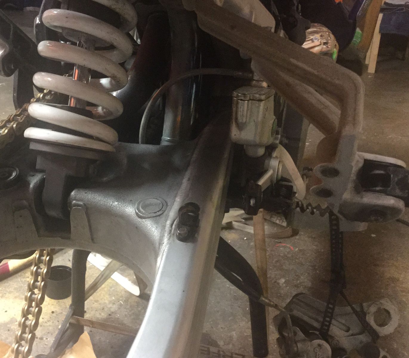 Schwingarmbolzen und Ferbeinbolzen raus, ging eigentlich ganz fix.