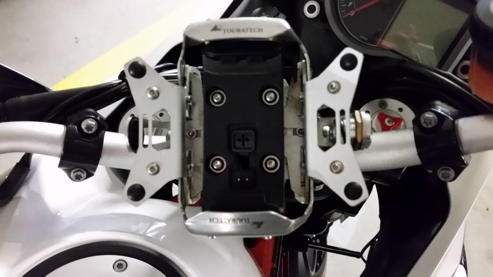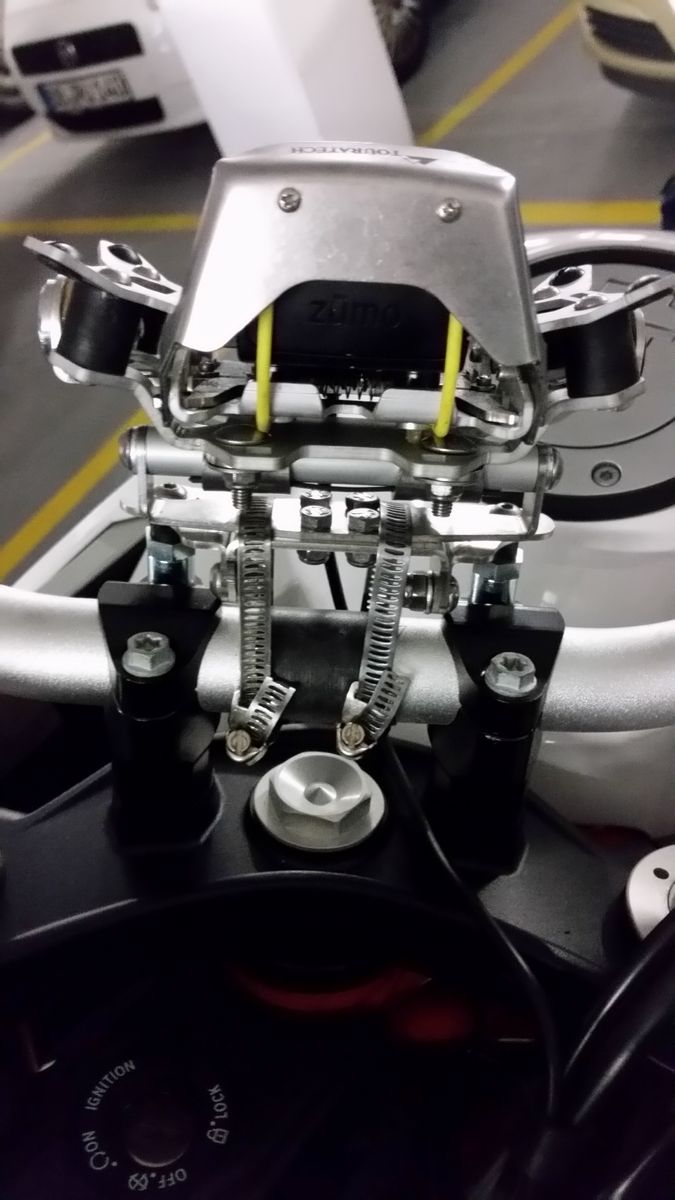An sich ist der TT Halter recht gut konstuiert; Nach einer Testfahrt hab ich aber gemerkt, das mein Navi bei bestimmten Drehzahl zittert. Das Problem liegt daran, das der Halter nur an zwei Klemmschrauben des Lenkers befestigt ist. Besser wäre wohl an alle 4 Schrauben gewesen. Beholfen habe ich mir dann mit zwei Schlauchschellen. Nun ist alles schön ruhig.