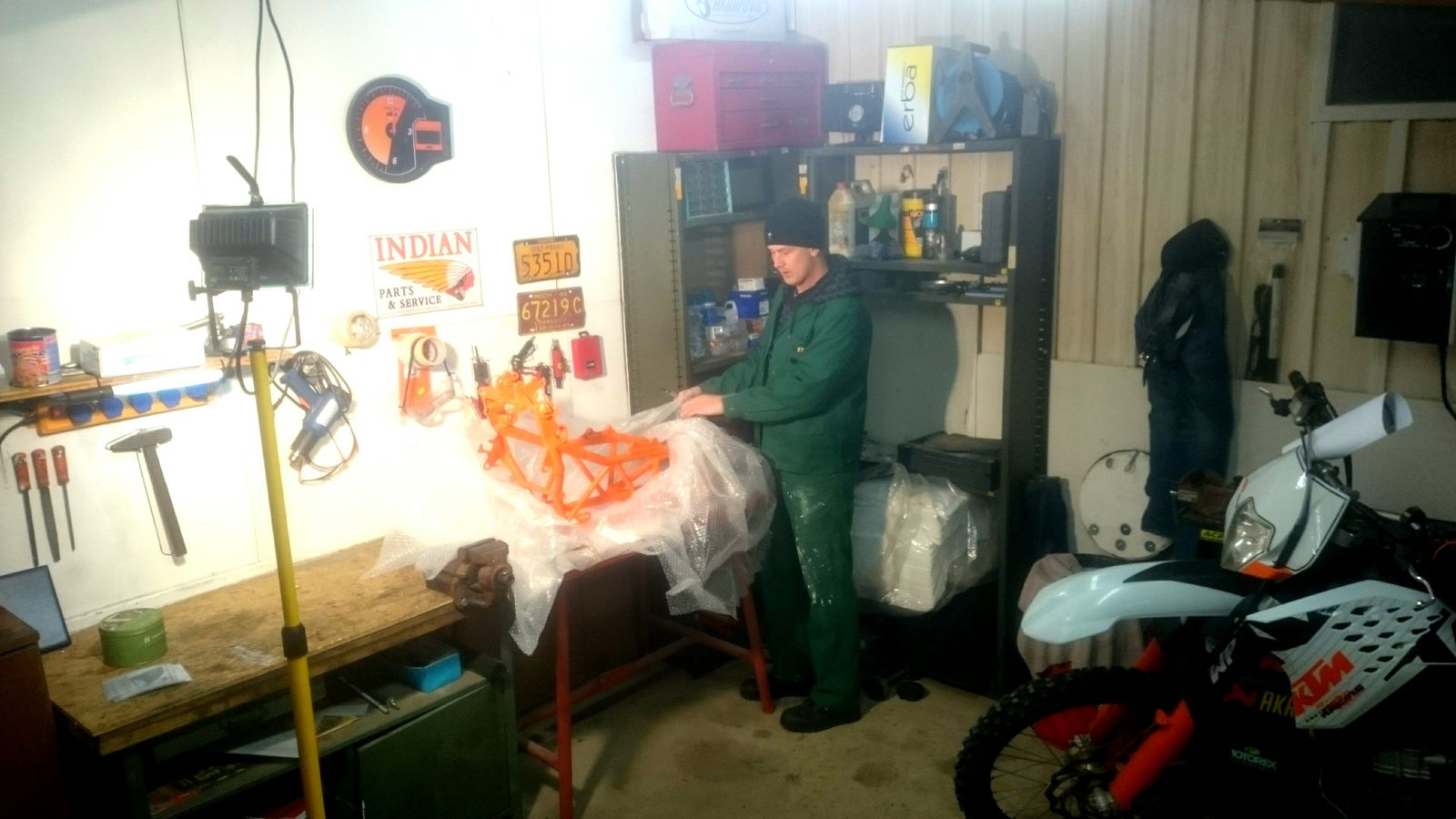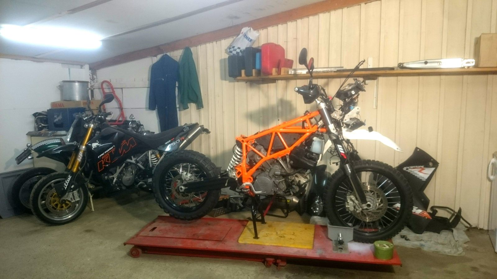 ....Rahmen, Schwinge, Sturzbügel und Kleinigkeiten gehen zum Pulverbeschichten!! jetzt wird eine 990R gefaked!!