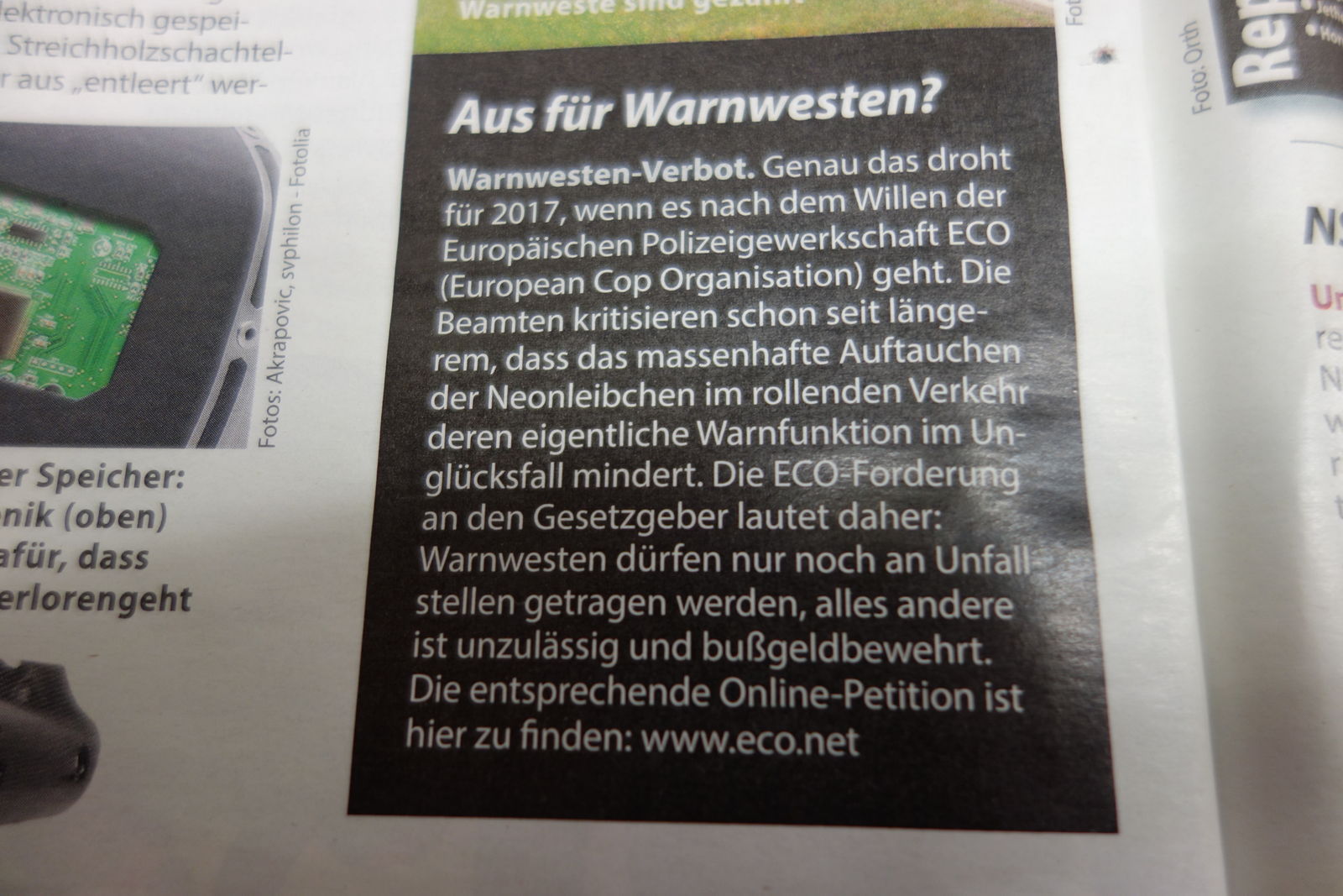 Ich halte das permanente Fahren mit Warnweste auch eher bedenklich.