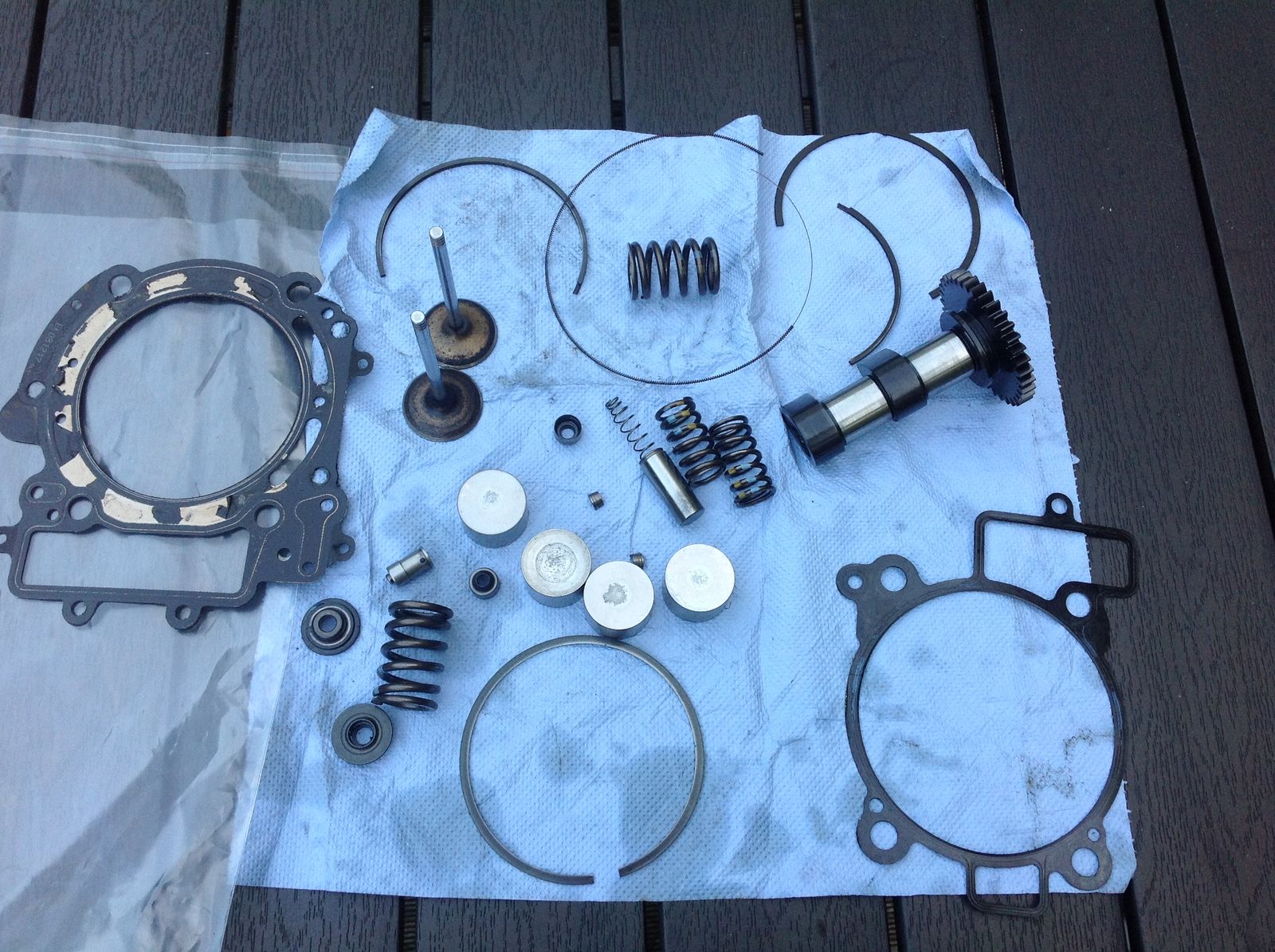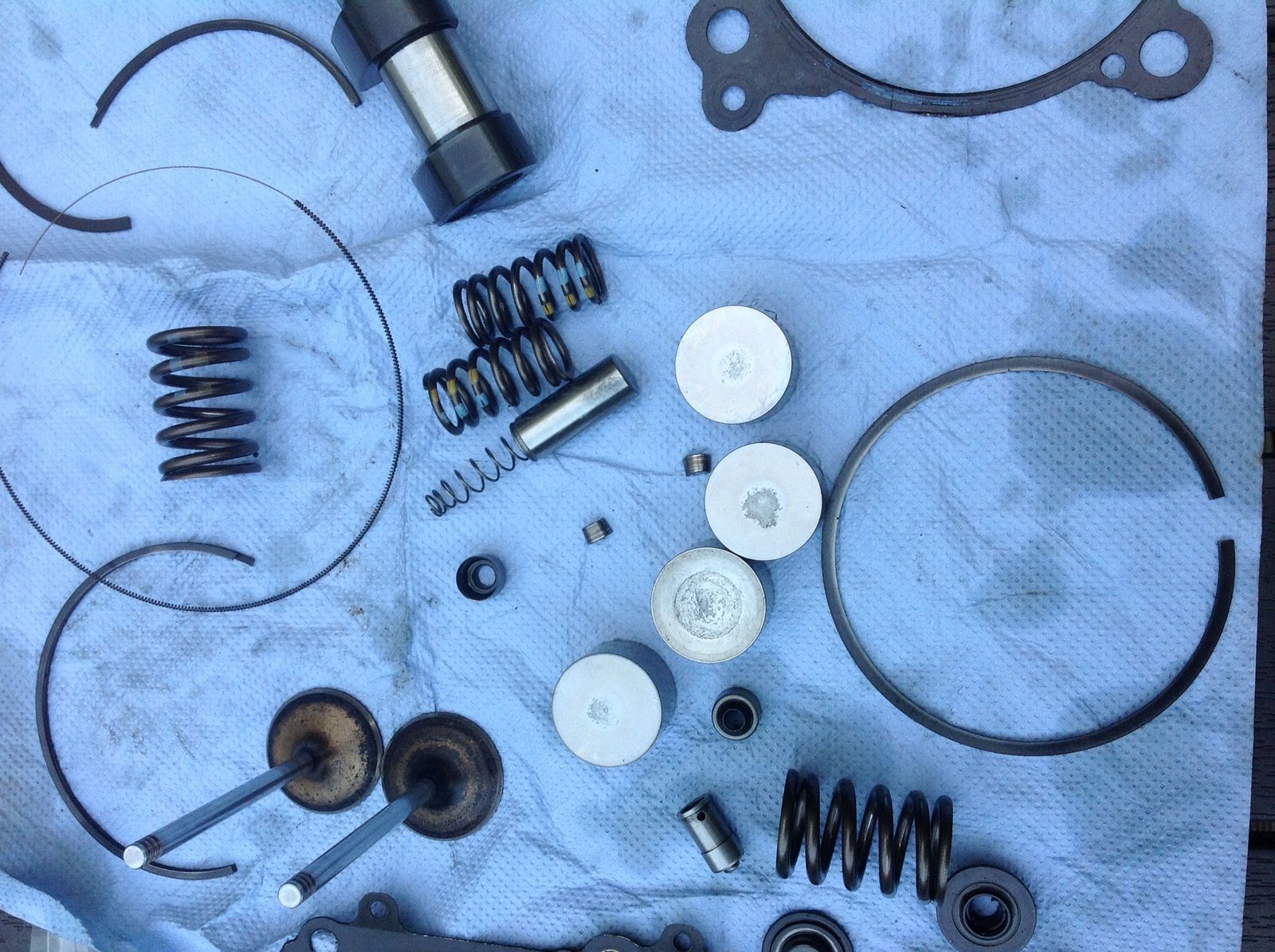 Also wie erwartet , das einzige Teil was da Geräusche verursacht hat ist der Steuerkettenspanner , welcher so fertig ist das sich in zwei Teile zerlegt hat. Der andere Kram verursacht keinerlei leicht wahrnehmbare Töne , die Kolbenringe sind vermutlich erst beim Ausbau draufgegangen , aber solange den Mist einer bezahlt ist alles gut wacko