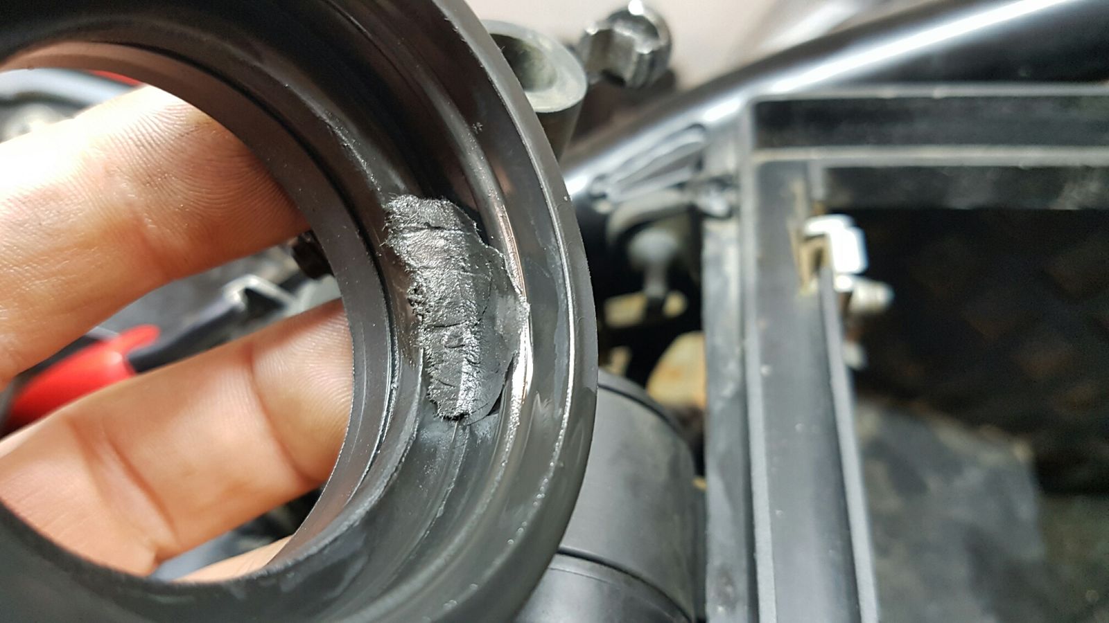 - Hauptbenzinleitung geknickt, meist an der Durchführung von unten her in die Airbox rein.