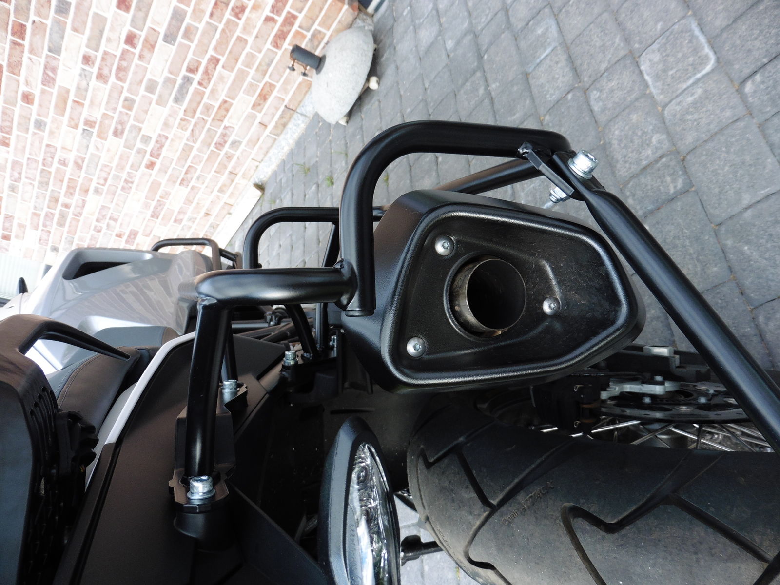 Testen im TT-Shop ob der ausgesparrte Koffer der GS oder Multistrada passt und den passend gebogenen TT-Seitenträger anpassen lassen an die @