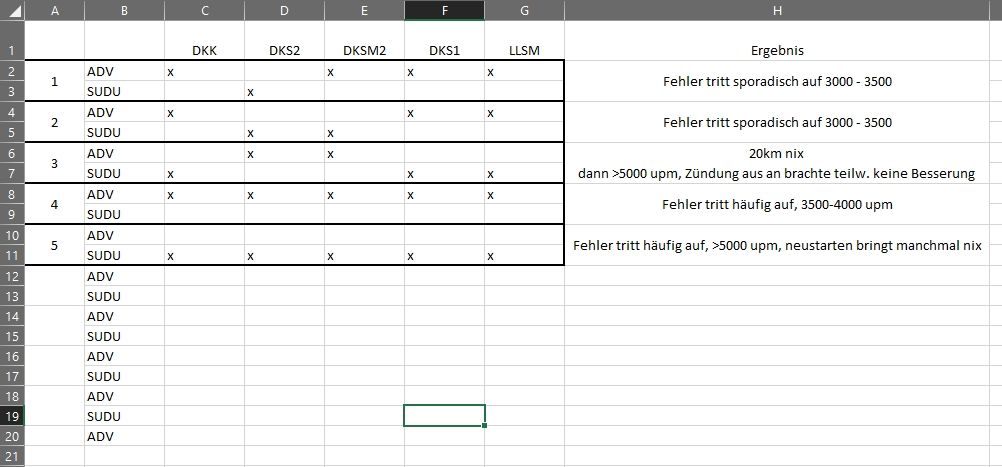 6.) Müsst man(n) des mal mit nagelneue DKS (und zwar vorderer und hinterer) probieren, damit man nach Squishers Ausschlussverfahren arbeiten kann.