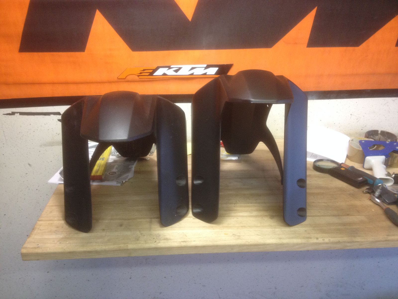 | Ich nehme an der hat die größere Fläche weiß foliert und dann die handelsüblichen KTM-Sticker drüber geklebt..............