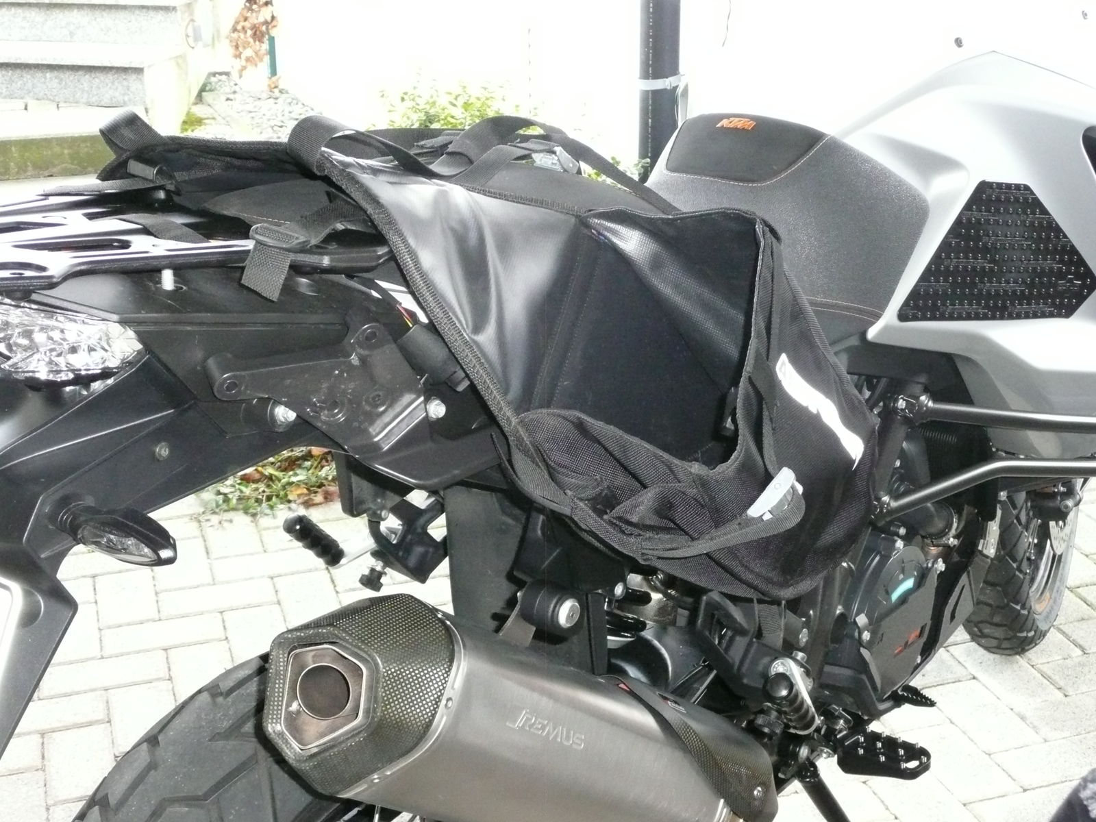 wie versprochen habe ich jetzt mal den ALTRIDER Hemisphere Packsack auf meine 1290SA montiert. Grundsätzlich müssen dafür die beiden Soziushaltegriffe demontiert werden. Anstelle dieser müssen vier passende Distanzen unter die Gepäckplatte. Speziell bei meiner 1290SuperAdventure (Baujahre 2015 bis 2017) gibt es das Problem, daß der Schalter für die Sozius-Sitzheizung an den rechten Haltegriff montiert ist. Man müßte ihn also komplett demontieren und deaktivieren - oder lose unter die Sitzbank legen. Falls Deine 1190er eine Sozius-Sitzheizung haben sollte, sitzt der Schalter vermutlich eingelassen in den rechten, hinteren Seitendeckel. Dann kann man ja problemlos die Haltegriffe abbauen. Man sollte nur darauf achten, daß der Hemisphere-"Holster" - das ist die zu verzurrende Grundkonstruktion des Hemisphere-Packsacks - nicht auf diesen Schalter drückt. Im Zweifel also auch hier: deaktivieren, um ungewollte Betätigung zu unterbinden.