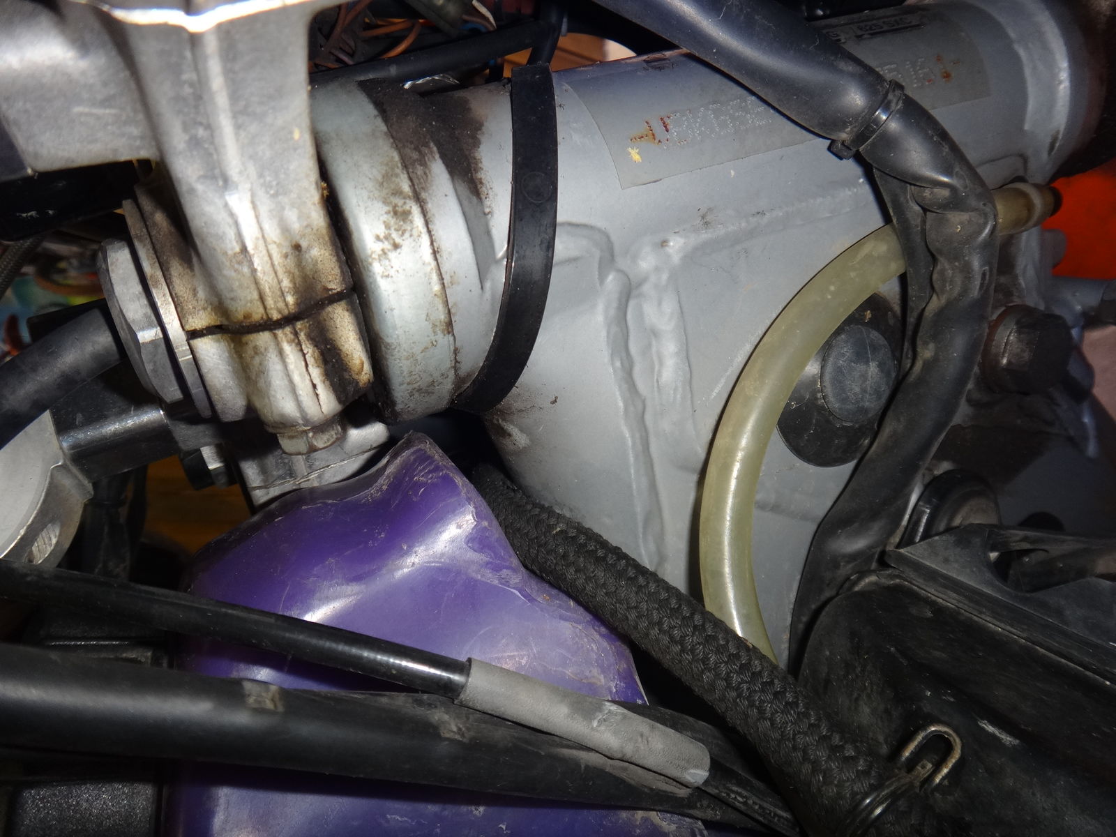 ... jetzt net gleich aufgeben --- so sieht´s bei mir aus: man kann die Ausnehmung für den Kühlerschlauch etwas sehen, falls das bei dir nicht geht, dann halt den Schlauch wie von Ulli beschrieben verlegen.