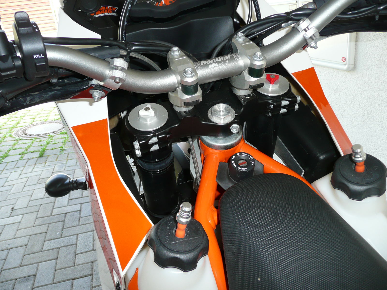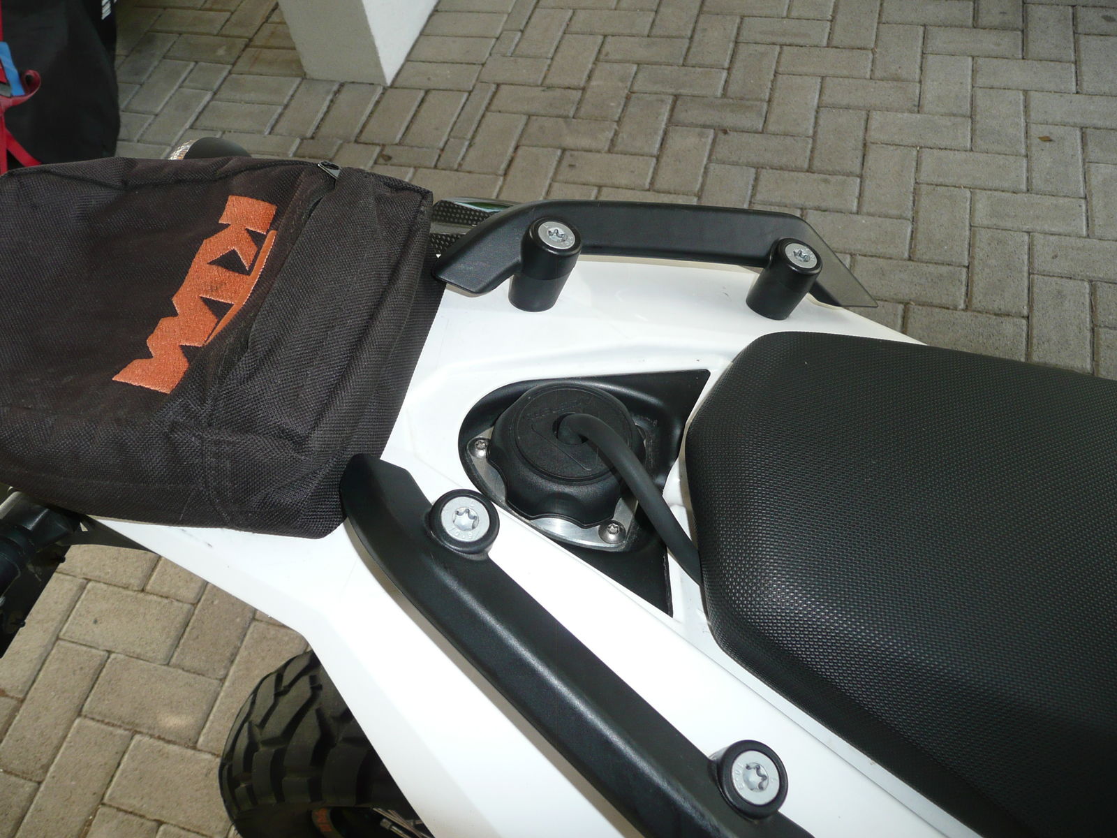 | Bei meiner 690 KTM habe ich auch das Problem das nach 320 km die Tankkontrolle leuchtet , aber der vordere Tank noch fast voll ist. Nach meiner Vermutung liegts am am Tankdeckel. Das halbe habe ich einen Einfüllstutzen von CJ Designs Biller Fiel Filter Neck bestellt. Leider warte ich nun schon zwei Monate darauf, da er am Postweg verloren gegangen ist. Den Großen der genaue in das Dreieck passt bekommt man sonst nirgends?