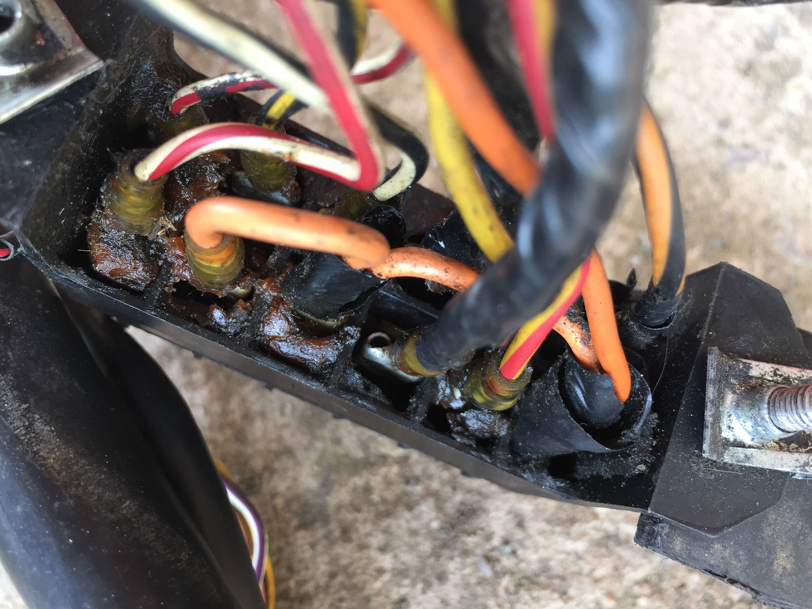 Was jetzt den Brand verursacht hat, konnten wir leider nicht endgültig klären. Beim alten Baum waren doch an einigen Stellen ein paar Kabel blank gescheuert (was die Werkstatt in RU ja eigentlich behoben haben sollte...) und hatten somit Kontakt mit dem Rahmen und wurden logischerweise mit dem neuen Baum gleich getauscht. Vorderer und hinterer Bremslichtschalter hatten einen Wackler - wurden getauscht. Sicherungskasten war nicht mehr original und sah fieß aus - wurde getauscht. Ein Defekt an der Lampenmaske konnten wir nicht ausmachen und warum gerade zuerst die Sicherung für die Uhr durchgebrannt ist - das weiß nur der heiße rumänische Sommerwind!