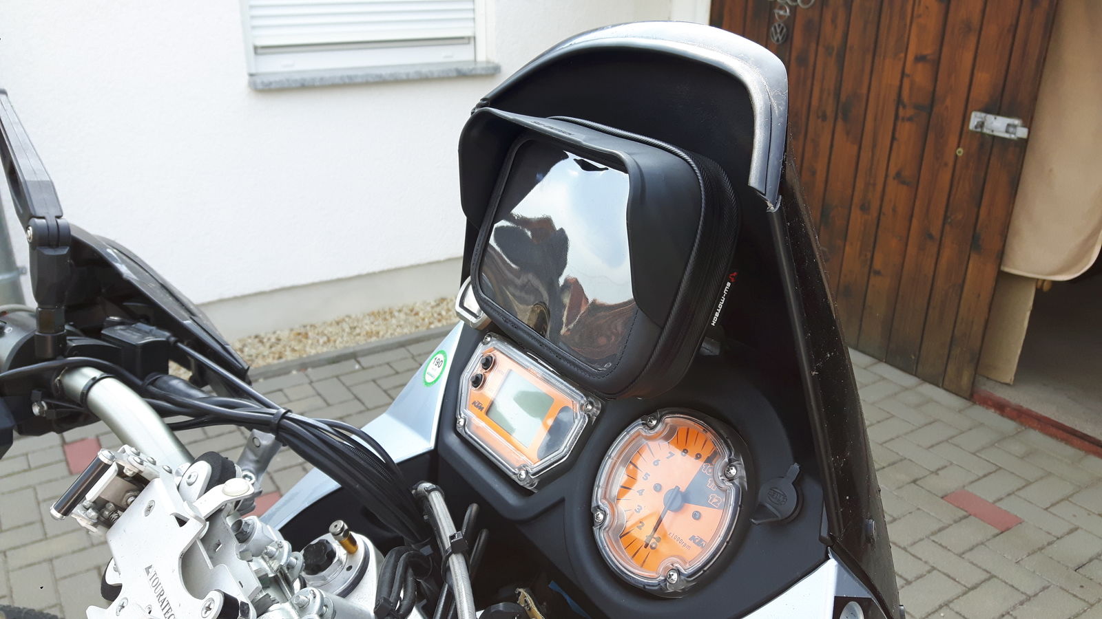 wäre mir auch zu groß. Da ist das von BRB empfohlene case deutlich besser. Habe ich am Motorrad auch schon getestet (jetzt am Fahrrad) und hält super. Im Winter will ich die Halterung so umbauen, dass die Halterung genau hinter das Windschild kommt.
