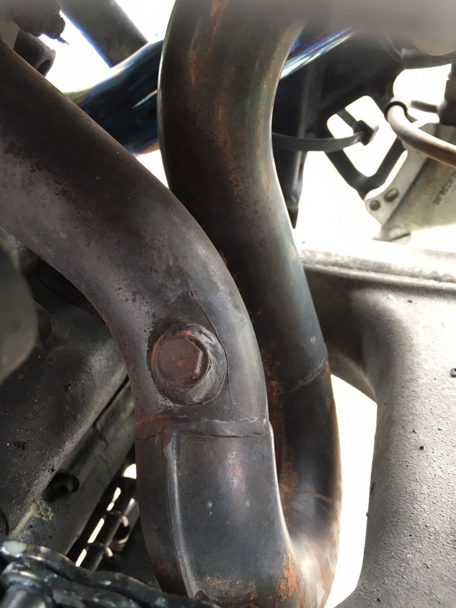 Ich hab offensichtlich einen 990 Krümmer dran, in der Gewindemuffe befindet sich sonst sicherlich die Lambdasonde. Befindet sich im hinteren Rahmendreieck.