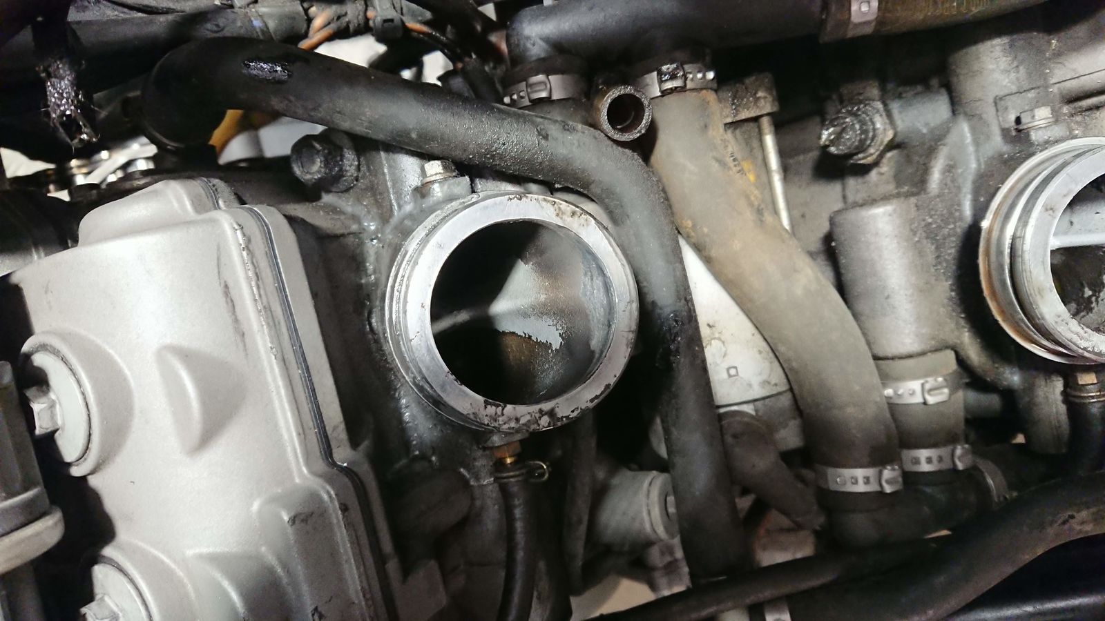 In den Einlasskanälen, an der Zylinderkopfdecke und den Ventilen (Bild folgt noch) und auf dem Kolbenboden sind starke Verussungen: die Maschine muss schon länger Öl gebraucht und Öldampf nach oben "gespuckt" haben. Auch beim Zerlegen des Motors war überall ÖL (war im zusammengeschraubten Zustand nicht sichtbar). Naja, ist schon ärgerlich.
