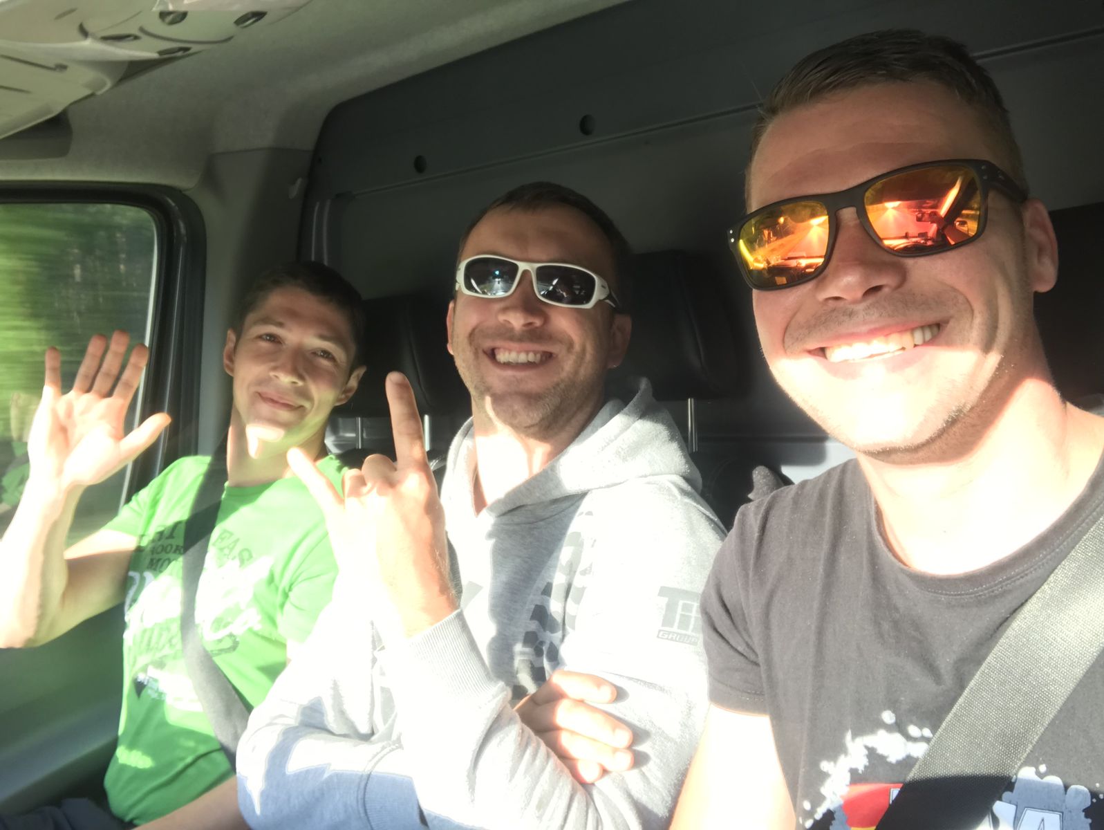 Andy quer über die Sitze, ich quer im Fußraum und Robbe mittels Isomatte zwischen Anhänger und Sprinter….was für eine glorreiche Nacht.