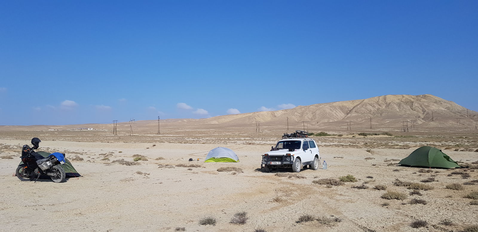 Nach viel Rumfragerei im dortigen Hafen und umfangreichen Internetrecherchen (caravanistan.com !) stellte sich heraus, dass für mich wohl nur der Weg über das Kaspische Meer in Frage kam. Direkte Fährverbindungen zwischen Kasachstan und dem Iran gibt es nicht und auch Turkmenistan ist von Aqtau wohl nicht per Schiff erreichbar. Ein zufällig im Hafen von Aqtau angetroffener Iraner (danke Ali!) brachte mich dann auf die Idee mit Aserbaidschan. Aserbaidschan stellt gegen Gebühr ein ziemlich fixes Onlinevisum aus und zwischen Aqtau und Baku gibt es sogar eine halbwegs regelmäßige Fährverbindung. Also Expressvisum für 90 Dollar im Netz besorgt und auf die Suche nach Fährtickets gegangen. Das war dann leider etwas komplizierter^^ Onlinebuchung, geschweige denn einen konkreten Fahrplan gibt es auf dieser Fährlinie nicht. Nur ein gutes altes analoges Büro in Aqtau in dem man Tickets buchen und nach den Abfahrten fragen kann. Aber nur an normalen Werktagen. Und es war Freitag Abend-.- Hier half dann caravanistan weiter und verriet mir die Nummer eines Angestellten der Fährlinie der Tickets besorgen könnte. Dieser war aber kaum des Englischen mächtig und ich verstand sein russisch nicht. Über eine nette Rezeptionistin die gut Englisch sprach, konnte ich dann doch Kontakt herstellen, worauf mich der Typ an einen weiteren Typ vermittelte der mir folgende Anweisung gab: "Sei am Montag Morgen um 2 Uhr im Hafen Kuryk. Dann sollte ein Schiff anlegen. Tickets verkauft irgendjemand vor Ort, nimm US-Dollar mit". Entsprechend war ich ab Sonntag Abend vor dem Gelände des nagelneun Fährhafens Kuryk (etwa 70km entfernt von Aqtau mitten im unbewohnten Niemandsland) und wartete auf die Fähre. Neben mir hatten sich noch einige andere Reisende versammelt und so wurde es eine lustige Runde. Morgens um 4 legte dann tatsächlich ein Schiff an und um 8 Uhr morgens kamen zwei schmierig aussehende Typen die uns Tickets verkauften. Kostenpunkt 80USD pro Person plus 120USD fürs Mopped (die waren dann in Aserbaidschan zu bezahlen). Eine teure Reise. Nach stundenlanger weiterer Warterei, endlosen Kontrollen sämtlicher Papiere (hier musste die Zollerklärung dann abgegeben werden) und dem Bezahlen der Hafengebühr ging es dann gegen 16 Uhr auf die Fähre. Der ganze Ablauf erschien noch relativ unorganisiert und uneingespielt, was daran liegen könnte, dass der Hafen erst seit wenigen Monaten in Betrieb war. Bei der Fähre handelt es sich um ein altes Fährschiff das für den Transport von Zügen und LKW ausgelegt war und nebenbei Kabinen an abenteuerlustige Reisende vermietete. Die Fahrzeuge der Reisenden inklusive der Kati wurden irgendwo zwischen den Zügen verzurrt und dann ging es in die uralten Zweimannkabinen. Alt und abgeranzt aber es gab saubere Bettwäsche und ein Bullauge das man öffnen konnte. Herrlich! An Bord gabs Vollverpflegung und ständig heißen Tee. Sonst gabs natürlich nichts zu tun, aber man bekommt sich schon beschäftigt^^ Nette Gesellschaft war ja vorhanden und das Essen war auch in Ordnung! Wir kamen dann Dienstag Abend gegen 23 Uhr im Hafen von Alat (südlich von Baku) an und warteten auf die Erlaubnis zum Anlegen. Hier hatte ich Geschichten gehört, dass es bis zu 6 Tage dauern könnte bis das Schiff im Hafen anlegen durfte und tatsächlich hat ein Ami den ich vorher in Kasachstan getroffen hatte, später 2 komplette Tage auf Reede gelegen. Die arme Sau! Wir durften jedenfalls relativ zügig anlegen und konnten von Bord. Aufgrund eines IT-Problems und aktuter Unfähigkeit der aserbaidschanischen Hafen-/Grenzbeamten dauerte der Aufenthalt im Hafen jedoch noch bis 4 Uhr morgens. Erst dann hatten wir sämtliche Gebühren bezahlt (den Fährpreis für die Fahrzeuge, Hafengebühr auf aserbaidschanischer Seite, Gebühr für die Benutzung aserbaidschanischer Straßen), unser Gepäck war fertig kontrolliert (sehr ausführliche Suche nach "Drogen" in Medikamenten) und die Stempel im Pass (Visum unbedingt ausgedruckt mitbringen). Da es bereit so spät war, bin ich mit einigen anderen Reisenden nur noch ein paar Kilometer vom Hafen weg gefahren und hab in der Wüste gecampt... Am nächsten Tag fiel mir dann ein, dass ich ja noch eine Haftpflichtversicherung fürs Mopped brauche. Also zurück zum Hafen und fragen... Dort konnte mir aber niemand helfen, also beschloss ich in einem Rutsch in den Iran zu fahren und auf mein Glück zu hoffen. Die 212km bis zur iranischen Grenze konnte ich auf dem hervorragenden Highway zügig und ohne Kontrolle hinter mich bringen. Die Ausreise aus Aserbaidschan verlief problemlos und zügig. Die Grenzer waren durchweg freundlich, der Grenzposten war jedoch etwas unübersichtlich^^