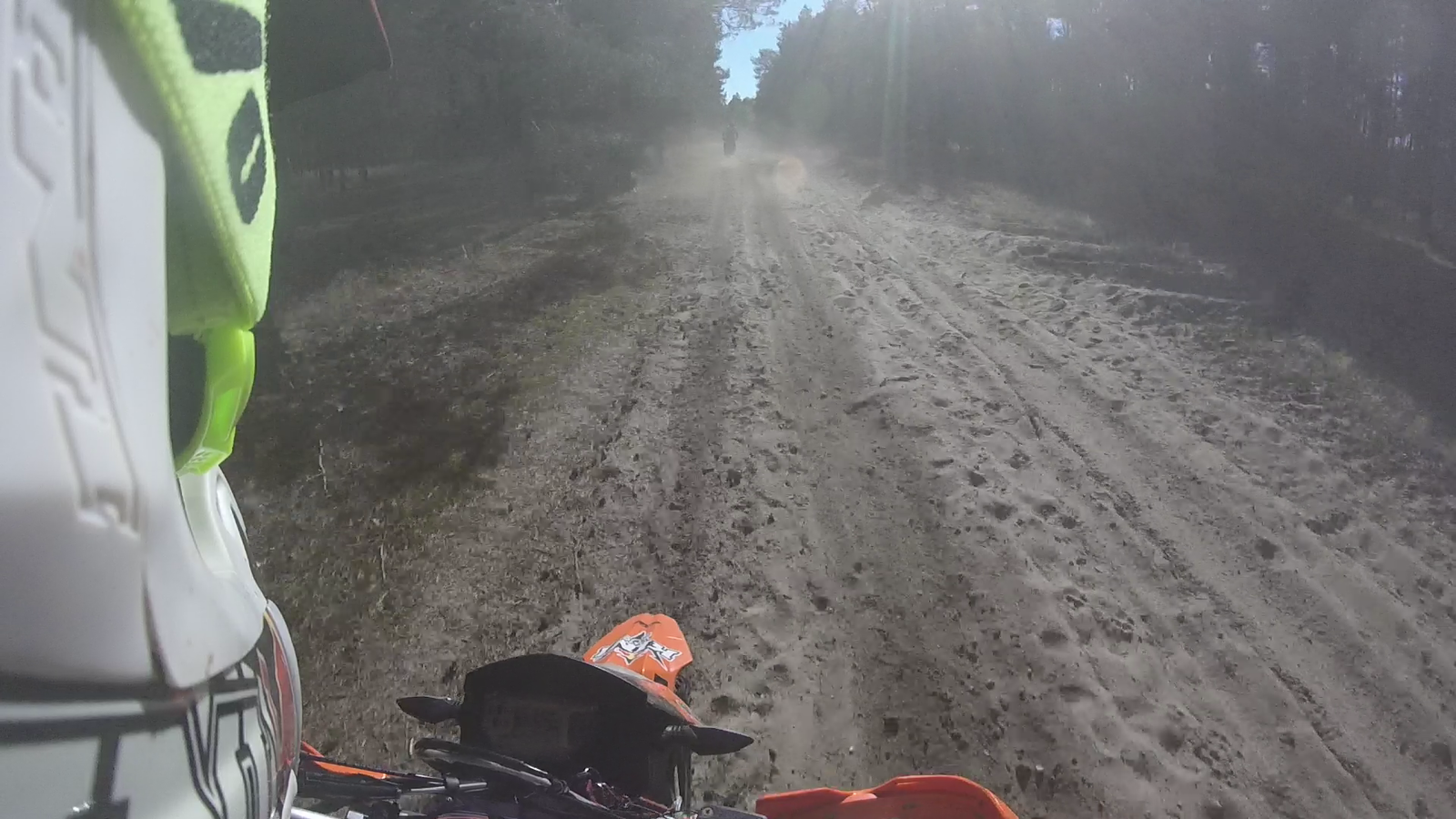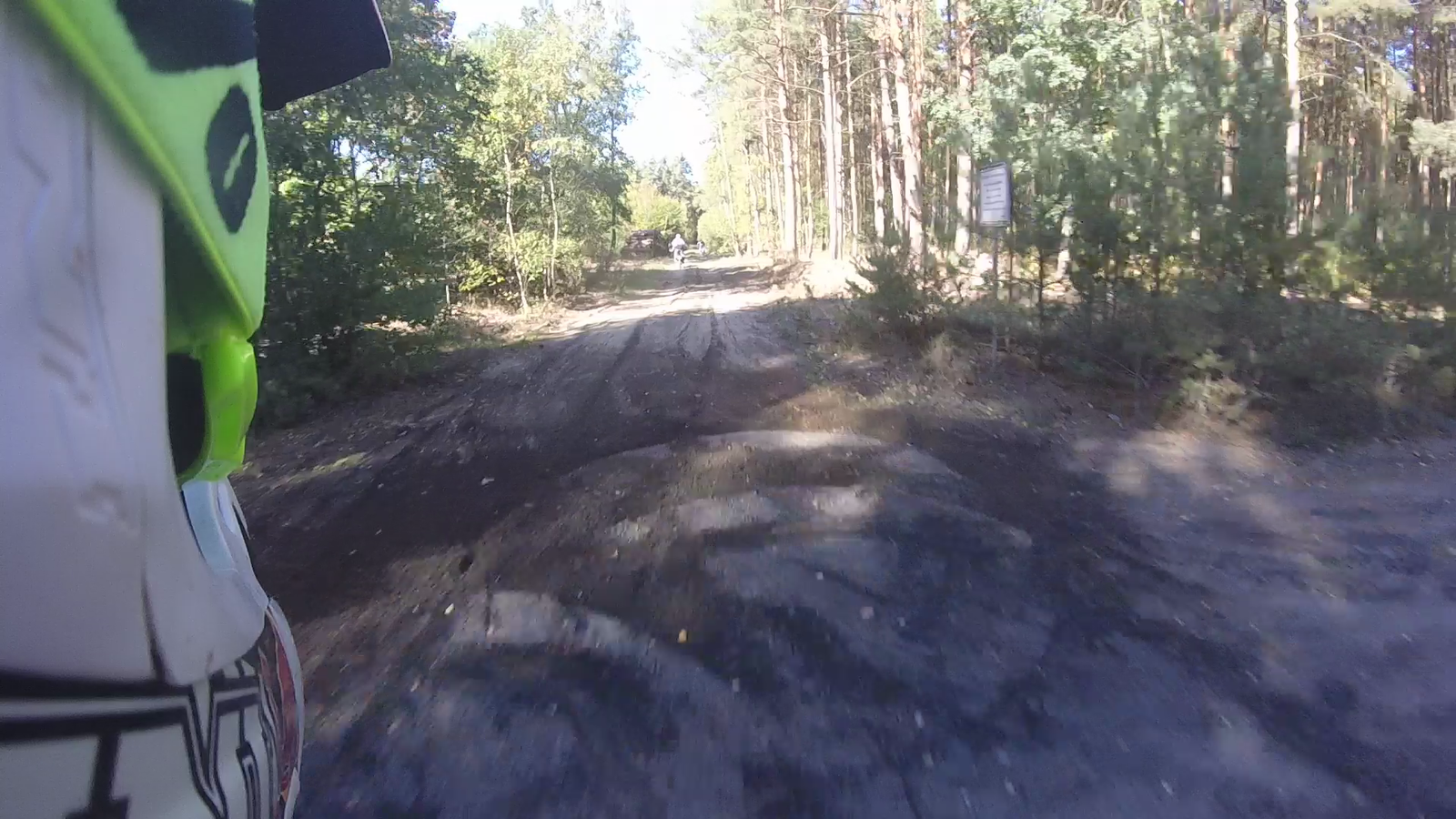 Knappe 10 km weiter kommt mein Vorderrad nach ´nem Minihügelchen schön auf einen quer liegenden Knüppel und der Papa findet sich 2-3 Meter weiter auf der Erde wieder.