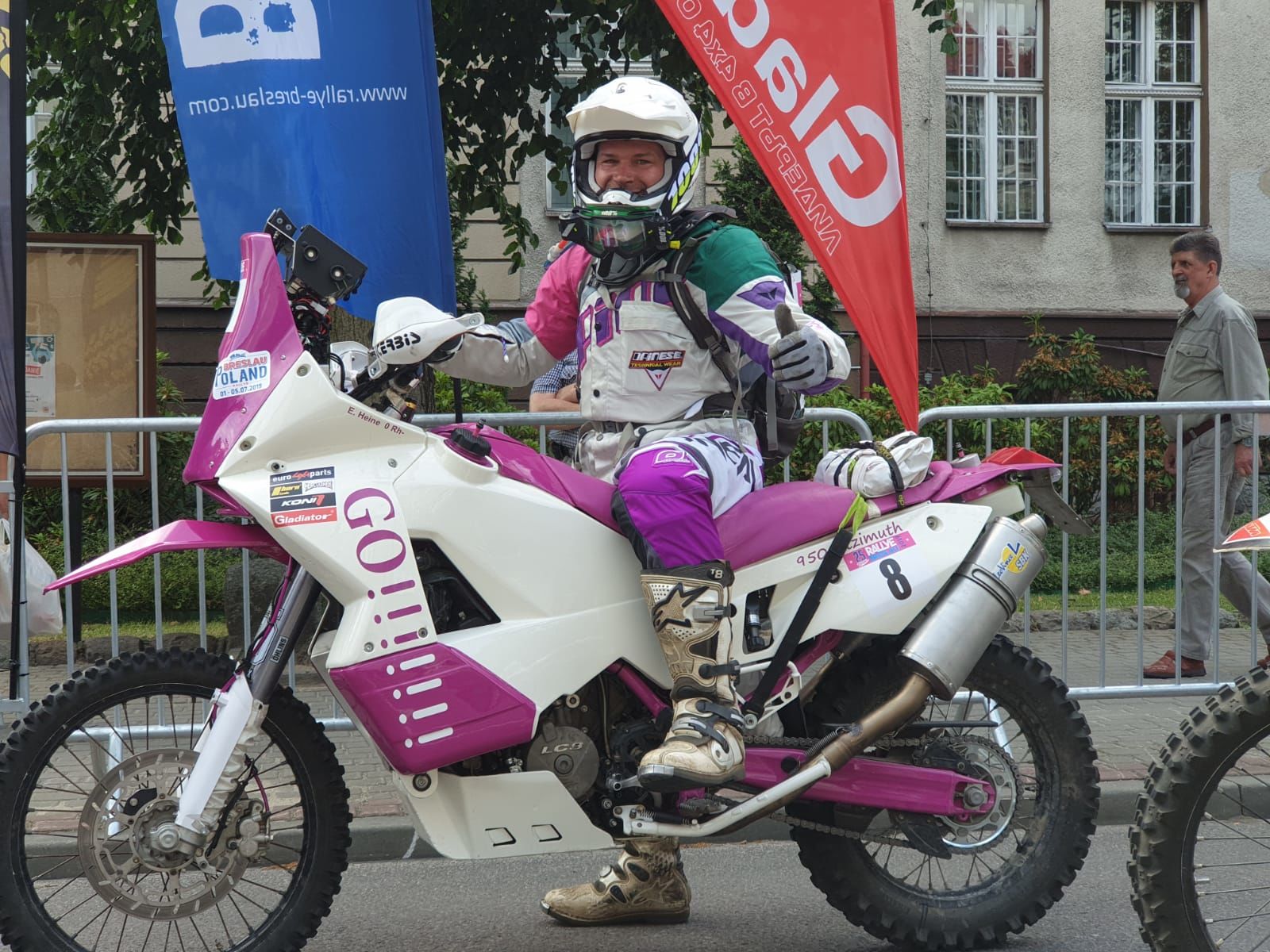 Robbe hatte allerdings einen ähnlichen langsamen Umfaller, der ungünstig seinen Vorbau samt Roadbook verbogen hat.