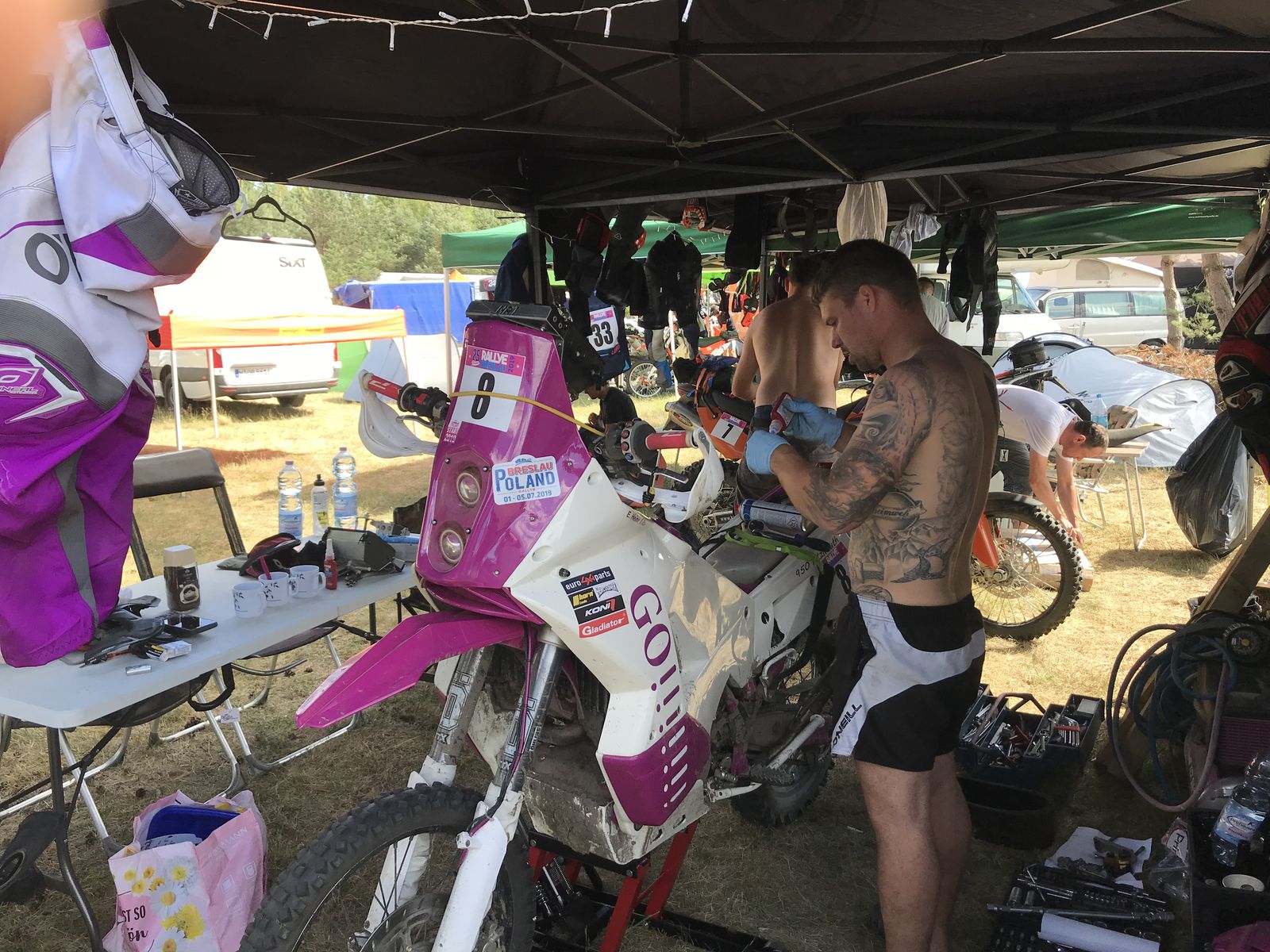 Auch wenn wir in diesem Jahr nicht unbedingt einen Serviceman(n) für den Campwechsel gebraucht hätten, so waren die beiden für uns Mopedfahrer die guten Seelen im Camp.