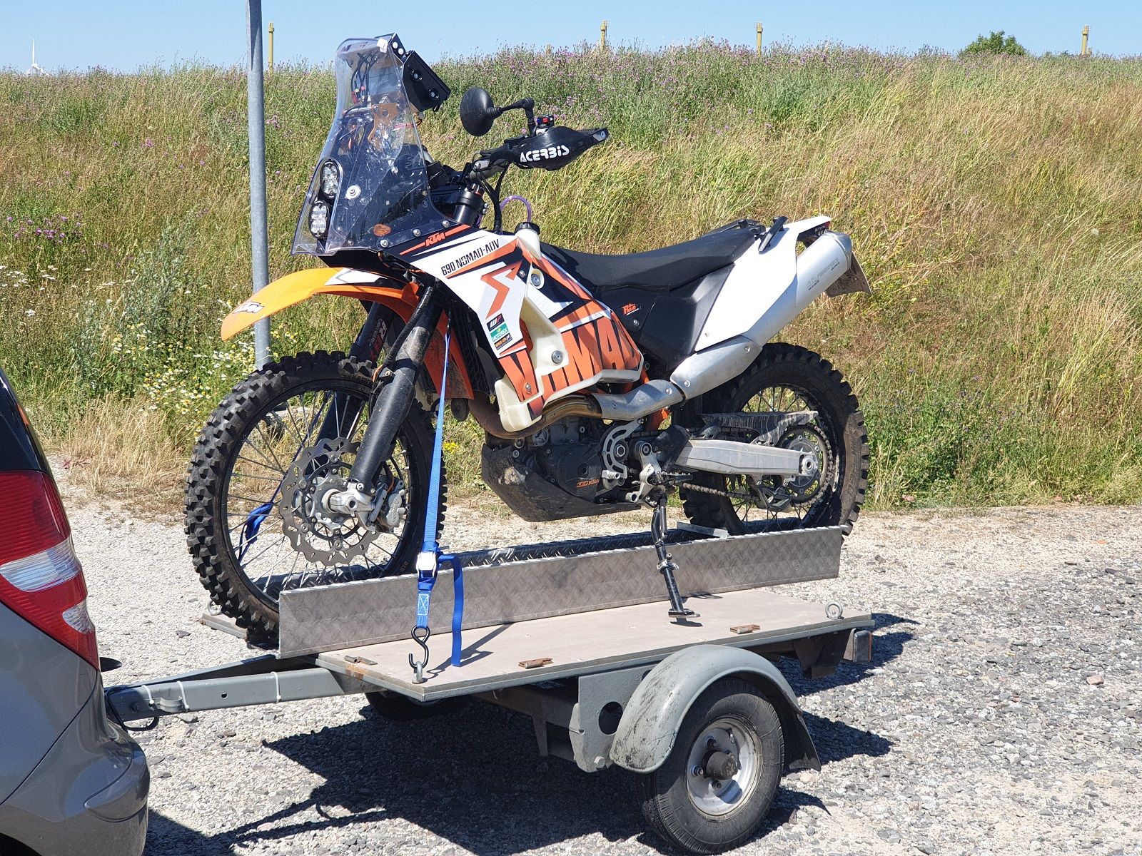 Das Roadbook habe ich mit dem Helm schön Kaltverformt, Handschützer und Auspuff sowieso, also alles zurückdrehen.