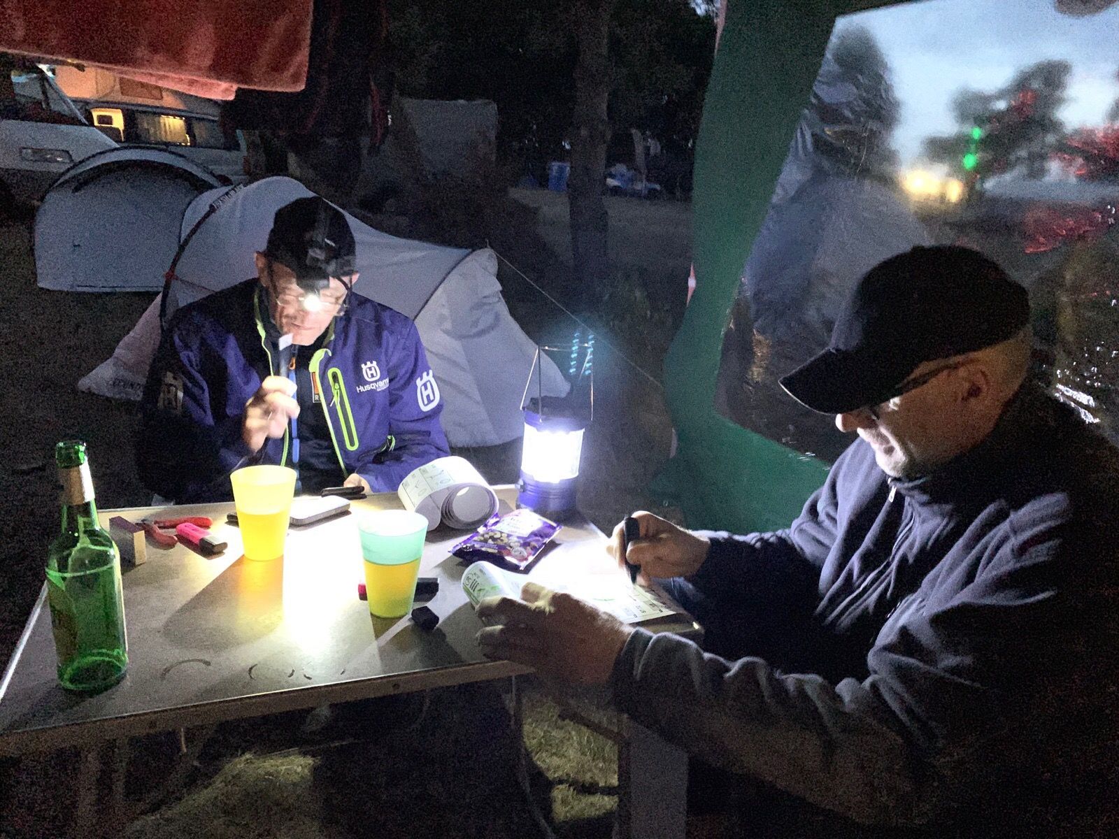 Wenn einem zu späterer Stunde doch noch langweilig war, konnte man immer mit einem Bier herrlich zuschauen wie Friedrich sein Roadbook einrollte…das er es dabei nicht angeschrien und geschlagen hat war ein wunder und lenkte von den eigenen körperlichen Schwächen ab.