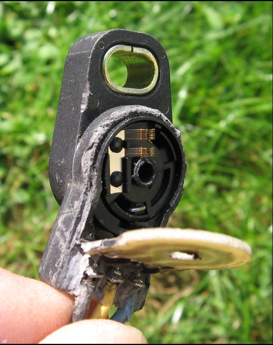 Nach dem Wechsel vom vorderen unteren Drosselklappen Sensor (durch Werkstatt) habe ich das ausgebaute Teil mal "aufgeschraubt". (siehe Fotos)