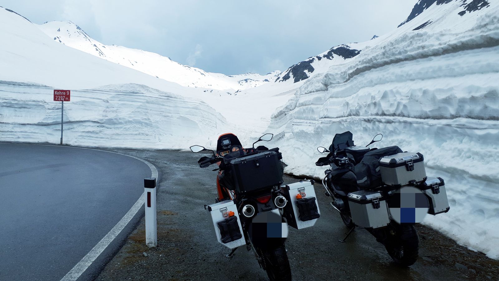 War im Juni mit der Käthe in Südtirol. Es war an einem Tag zu Beginn ultra-mega nass. In Sölden angekommen fing es in Strömen an zu regnen und dabei blieb es auch erstmal. Dann über's Timmelsjoch und rein nach Italien. Den Rest der Zeit hatten wir absolutes Top-Wetter.