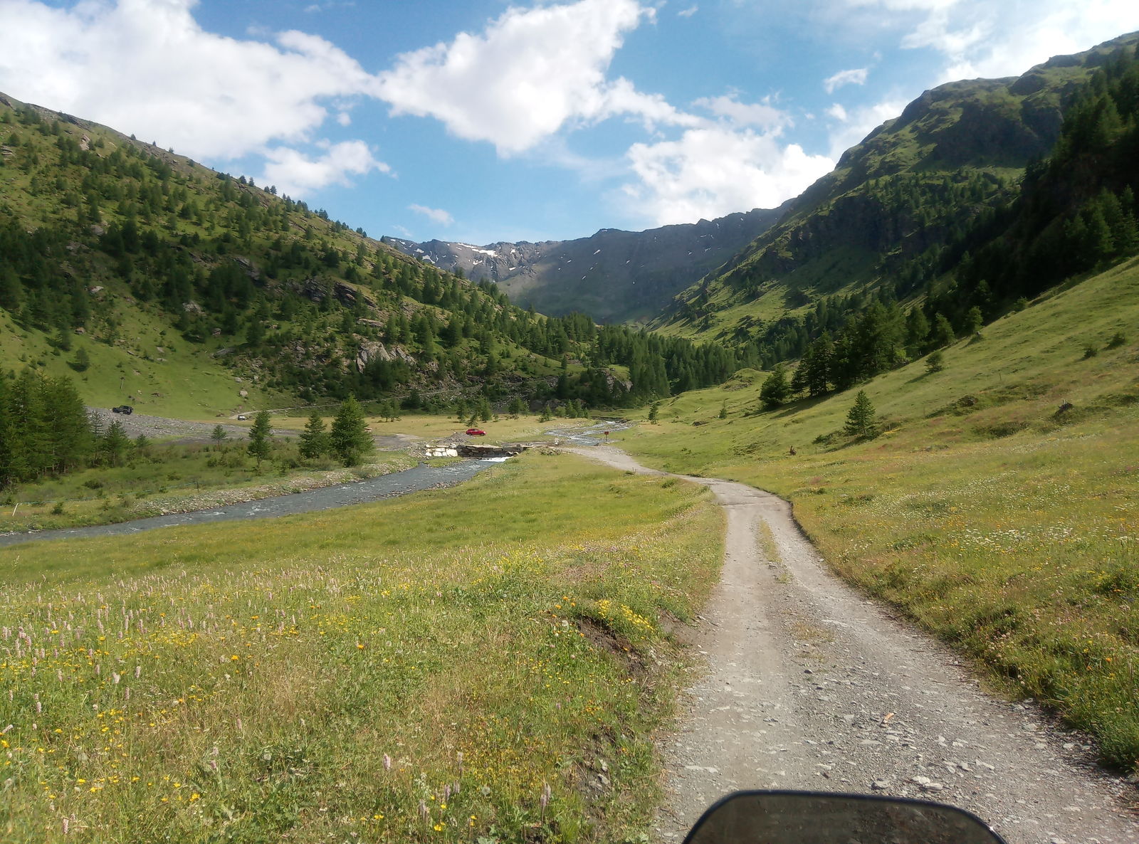 Anfahrt vom Kanton Bern Richtung Wallis am Freitag Nachmittag mit Zwischenübernachtung im wunderschönen Evionnaz (Herberge o.k. und sehr günstig für die Schweiz: 50CHF). Dann am Samstag bei 38°C "Abkürzung über eine Mountainbikepiste in Salvan/Le Cerisier nach Finhaut Richtung MontBlanc. Dann über Chamonix, Cormet de Roselend, Iseran, MontCenis, Susa zum Camping Gran Bosco in Salbertrand. Die Rally-Truppe hatte sich ja schon installiert und im Laufe der Woche trudelten noch mehr LC8ten und sonstiges Gebrumm ein. Wir haben dann gemütlich zu zweit ein paar Touren unternommen (Finestre/Assietta, Sommelier, Lago Nero) sind einmal mit der Truppe ausgeritten (wobei das hat sich nach zehn Minuten erstmal etwas verzögert weil eine 990er streikte), mit denen wir es dann doch noch bis Lac Mont Cenis hinaufgeschafft haben. Ich wie immer ganz hinten Lumpensammler gespielt und ein Franzose hat sich dann auch prompt in ein entgegenkommendes Affentwin-Paar verkeilt. Zum Glück nix schlimmes passiert ausser ein paar verbogenen Teilen, Schrammen und einer schockierten Sozia. Danach ward die Truppe vom Winde verweht und wir fuhren zu viert das nächste Refuge an, um die Plautze zu füllen. Wir sind dann gemütlich weitergfahren (Mont Cenis - echt lässig da oben) und haben den Nachmittag ausklingen lassen. Mein Bedarf an Grossgruppe war dann erstmal wieder gedeckt, woraufhin wir am nächsten Tag eine Tour zum Lago Nero (Hammer!) machten. Irgendwann sind wir dann auch noch das Valle d'Argentere (auch ganz toll) hochgefahren - das kostet zwar 3€, aber das ist es wert. Zwischendrin mal die Gegend erkundet und ein paar Sackgassen gefinden.
