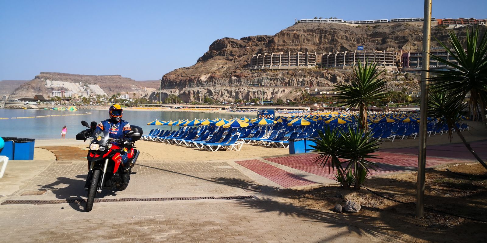 Man kann mit dem Motorrad direkt bis zu Playa de los Amadores zum Baden fahren....