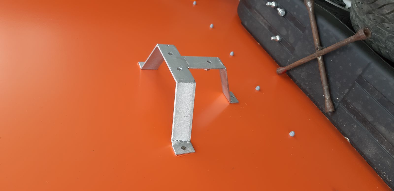 Basteltime....was nützt das Ersatzrad , wenn man es nicht an das Fahrzeug bekommt. Ein hydraulischen Wagenheber in die Sattelbox geschmissen und das Radkreuz unter den Anhänger verbaut