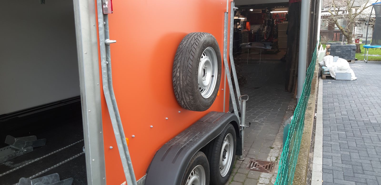 Ein Ersatzrad mit Eigenbauhalter habe ich dem Anhänger noch gegönnt. Eine Abdeckung kommt auch nicht.